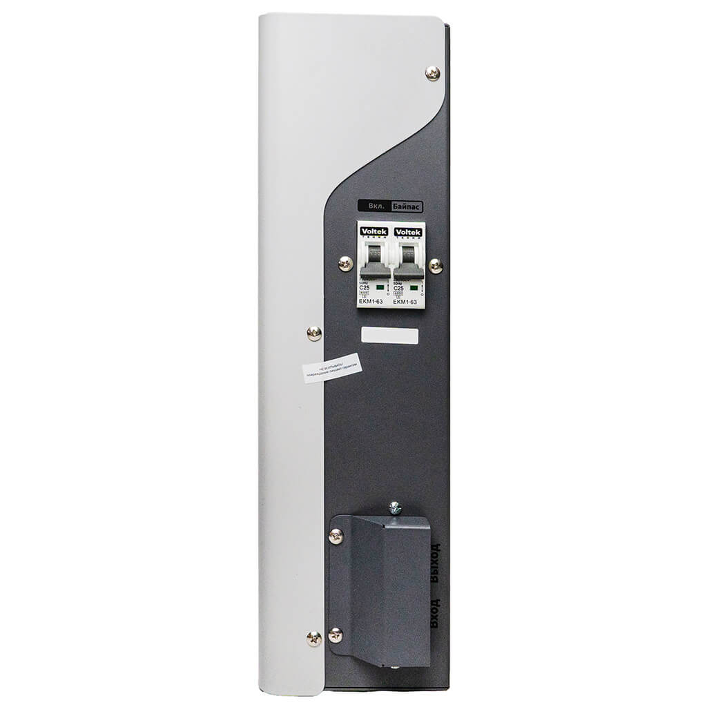Стабилизатор напряжения Voltek IS предназначен для поддержания стабильного напряжения в однофазных электросетях 220В в соответствии с ГОСТ 13109-97. Стабилизатор обеспечивает защиту от повышенного и пониженного напряжения, электрических помех, высоковольтных скачков и провалов входного напряжения. Стабилизатор оснащен комплексом систем, обеспечивающим надежную защиту как потребителей, так и самого стабилизатора от любых нештатных ситуаций, и рассчитан на непрерывную круглосуточную работу в условиях больших по значению и длительности отклонений напряжения от номинального значения. Тип стабилизатора: Инверторный (с двойным преобразованием) Мощность: 5 кВА (45 кВт) Максимальный ток, А: 23 Напряжение входа, В: 90 - 310 Напряжение выхода, В: 220/230 ± 2% Частота сети, Гц: 4257 Скорость реакции: 0 (мгновенно) Байпас: Автоматический и ручной Подключение: Клеммная колодка (L, N, PE) Перегрузочная способность: 150% (не более 5 сек) Охлаждение: Конвекционное, принудительное Защита от повышенного напряжения: Электронная, при >310 В восстановление при <290 В Защита от пониженного напряжения: Электронная, при <90 В восстановление при >110 В Защита от перегрева: Электронная, с автоматическим восстановлением Защита от короткого замыкания: Электронная, с автоматическим восстановлением Защита от помех: до 2.5 кГц Потребление без нагрузки, Вт: 45 Ток холостого хода, А: 0.20 Температура эксплуатации, °С: -20+40 Температура хранения, °С: -30+60 Относительная влажность: < 80% (без образования кондесата) Класс защиты по ГОСТ 14254-96: IP20 Габариты (В×Ш×Г), мм: 360×260×100 Вес нетто, кг: 6 Габариты упаковки (В×Ш×Г), мм: 408×286×150 Вес брутто, кг: 6.9 Отличительные черты стабилизаторов Voltek серии IS: Инверторная технология. Технология двойного преобразования напряжения обеспечивает чистую синусоиду, абсолютную защиту от скачков и просадок напряжения. Чистая синусоида. Обеспечивают чистую синусоиду даже при наличии помех во входной линии. Отлично подходит для чувствительной техники. Высокая эффективность. Низкое собственное потребление и высокая энергоотдача. Меньше выделения тепла, меньше потери мощности. Выдерживают высокие пусковые токи. Перегрузочная способность до 150% для устройств с высокими пусковыми токами (насосы, станки, компрессоры и т.п.) Широкий диапазон входных напряжений. Работают в самых проблемных сетях. Стабилизируют напряжение при скачках до 310 В и просадках до 90 В. Высокая точность. Погрешность выходного напряжения всего 2%. Это точнее требований ГОСТ. Подходит для самых требовательных и чувствительных приборов. Полный спектр защитных систем. Защита от аномальных напряжений, перегрева, короткого замыкания и перегрузки. 100% защита как приборов, так и самого стабилизатора Подходят для любой нагрузки. Для бытового или промышленного применения. Одинаково хорошо работают с резистивной, индукционной, емкостной и смешанной нагрузкой По шкале нагрузки можно отслеживать текущую нагрузку на стабилизатор. Не рекомендуется использовать стабилизатор в условиях перегрузки по мощности. Следует помнить, что при пониженном напряжении в электросети эффективная мощность стабилизатора пропорционально снижается. Зависимость эффективной мощности стабилизатора от входного напряжения показана на следующем графике: Стабилизаторы IS-1000, IS-1500, IS-2000, IS-5000, IS-10000 и IS-15000 оснащены многофункциональным информацион