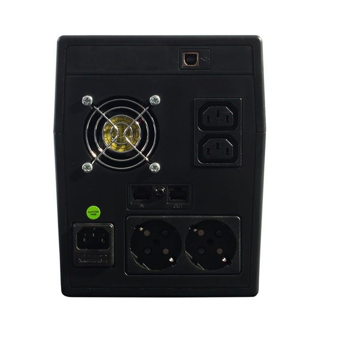 SKAT-UPS 3000/1800 - встроенный АКБ 9 Ач, 4 шт, время резерва 2 мин., холодный старт, модифицированый синус, световая и звуковая индикация режимов работы, графический дисплей режимов работы связь и управление ПК по USB. Встроенный стабилизатор (диапазон сети 162-290 В), защита от всплесков напряжения, защита от перегрузки. 4 выходных разъема: 2 шт. IEC 320 C13 (компьютерный), 2 шт. CEE 7/4 (розетка с заземлением). 1 Тип интерактивный 2 Выходная мощность, ВА 3000 3 Выходная мощность, Вт 1800 4 Время работы при полной нагрузке в автономном режиме, мин 2 5 Входное напряжение, частотой 50±1 Гц, В 162290 6 Выходное напряжение, В 220 ± 10 % 7 Время переключения на батарею, мс 810 8 Макс. поглощаемая энергия импульса, Дж 185 9 Количество выходных разъемов питания (с питанием от батарей), шт. 4 10 Форма выходного сигнала: ступенчатая аппроксимация синусоиды. 11 Тип выходных разъемов питания: IEC 320 C13 (компьютерный), CEE 7/4 (розетка с заземлением). 12 Тип АКБ: герметичные свинцово-кислотные необслуживаемые, номинальным напряжением 12 В. 13 Ёмкость АКБ, Ач 9 14 Количество АКБ, шт. 4 15 Отображение информации световая индикация 16 Звуковая сигнализация есть 17 Холодный старт есть 18 Время зарядки (до 90% полной ёмкости), ч 68 19 Защита от перегрузки есть 20 Защита от высоковольтных импульсов есть 21 Фильтрация помех есть 22 Защита от короткого замыкания есть 23 Тип предохранителя плавкий 24 Интерфейсы USB 25 Защита телефонной линии порт RJ-45 26 Цвет черный 27 Габаритные размеры ШхГхВ, мм, не более без упаковки 145х213х436 в упаковке 200х300х505 28 Масса, не более, кг 23 29 Диапазон рабочих температур, °С +5+40 30 Относительная влажность воздуха при 25 °С, %, не более 80 Особенности: питание персональных компьютеров или другой нагрузки с номинальным напряжением питания 220 В переменного тока и потребляемой мощностью до 3000 ВА (1800 Вт) (режим основной); автоматический переход на автономное питание при отклонении параметров сетевого напряжения за допустимые пределы или при полном пропадании сети (режим автономный); автоматический переход в режим работы от сети при восстановлении сетевого напряжения; быстрый заряд встроенной аккумуляторной батареи при наличии сетевого напряжения; световая и звуковая индикация режимов работы ИБП; функция «холодный старт»: включение ИБП для работы в автономном режиме при отсутствии сетевого напряжения; защита от глубокого разряда АКБ; стабилизация сетевого напряжения; управление энергопотреблением и возможность мониторинга состояния сети и ИБП в реальном времени через порт USB; защита от скачков напряжения для телефонной/модемной линии; защита от перенапряжения сети.