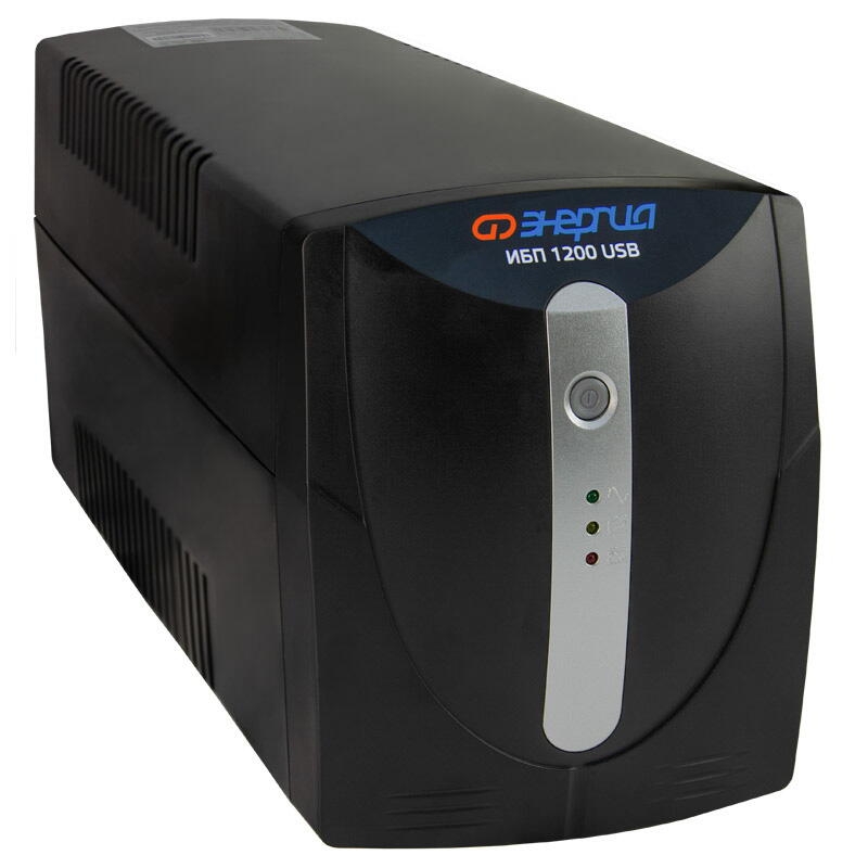 Бесперебойник Энергия 1200 USB может обеспечить автономное функционирование от 3 до 20 минут при отключении электричества и спасет от потери несохраненных данных на компьютере. Автотрансформатор с релейными ключами обеспечивает надежную защиту компьютера в сетевом режиме входных рабочих напряжений от 165 до 275 вольт. Если будет отклонение от этих диапазонов, то источник бесперебойного питания заработает от встроенного аккумулятора. Превосходство данной модели от предыдущей - наличие USB входа и кабеля для мониторинга работы ИБП. Программа мониторинга доступна для скачивания на сайте производителя. Способ установки: Напольный Относительная влажность (%): 90 Функция заряда аккумулятора: Есть Тип инвертора: Line-interactive Форма напряжения: Синусоида (от сети) / Модифицированная синусоида (от батареи) Рабочая мощность (ВА): 1200 Пик-фактор: 3:1 Наличие стабилизатора: Есть, автотрансформатор с релейными ключами Наличие аккумулятора: Внутренний 7 АЧ Тип аккумулятора: Свинцово-кислотная необслуживаемая тип AGM Величина постоянного напряжения (В): 12 Количество батарей: 2 x 12В 7Ач Время работы от батарей: 2-10 минут Время зарядки: 8-15 час 90% ёмкости Рабочий диапазон входного напряжения сети (В): 162-296 Выходное напряжение при питании от сети (В): 220 ±10% Выходное напряжение при питании от батарей (В): 220 ±1% Защита от полного разряда батареи: Есть Защита от перезаряда батареи: Есть Защита от перегрузки и короткого замыкания: Есть Время переключения режимов работы: Не более 8 мс Индикация параметров работы: Светодиодный индикатор Подключение к сети: Cетевой кабель с вилкой Подключение нагрузки к инвертору: 3 розетки Shuko Уровень шума: Не более 45 дб (на расстоянии 1 метр) Температура эксплуатации (°C): 0...+40 Вес нетто (кг): 8,65 Габаритные размеры (мм): 140x345x170 Вес брутто (кг): 9,2 Особенности: Автоматическая зарядка в режиме работы от сети; Интеллектуальное управление зарядом батареи; Встроенный стабилизатор напряжения; Длительное время работы от встроенной батареи; Форма выходного сигнала модифицированная синусоида; Микропроцессорное управление; Автоматический перезапуск; Световая индикация состояния; Защита модема, роутера, локальной сети - 2 порта RJ45 (вход-выход); Порты и интерфейсы - USB Type-B для мониторинга (Windows XP/Vista/7/8/10/11).