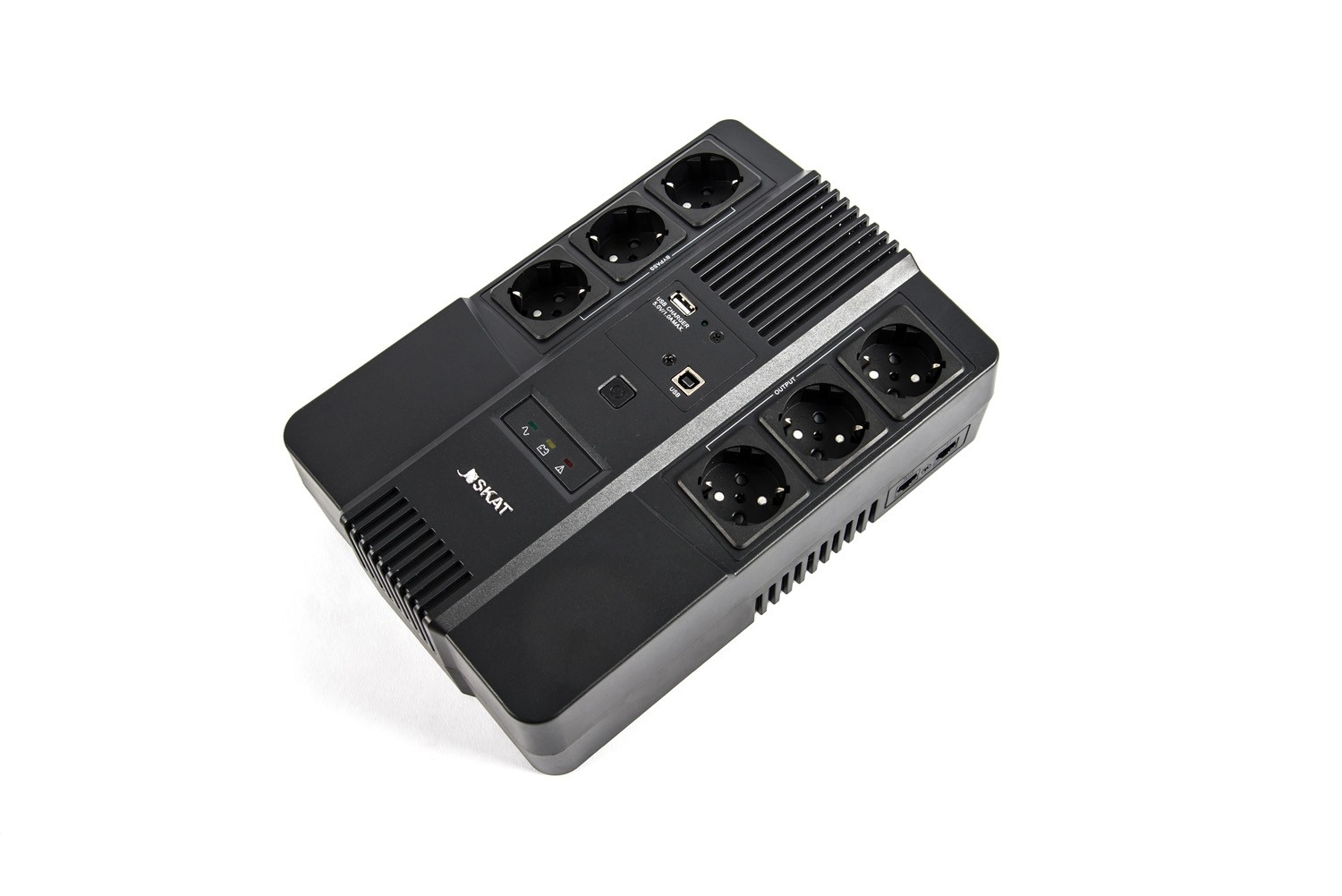SKAT-UPS 800 AI надежный российский источник бесперебойного питания 220 В, 800 ВА (480 Вт), имеет наиболее востребованные мощностные характеристики и идеально подходит для офисных целей. Встроенный АКБ 9 Ач, встроенная стабилизация, заряд и защита АКБ, защита нагрузки. Стандартная и компьютерная розетки. Выходная мощность, ВА / Вт: 800 / 480 Входное напряжение, частотой 50±1 Гц, В: 170270 Выходное напряжение, В: 220 ± 10 % Количество выходных разъемов питания, шт.: 6 Форма выходного сигнала: ступенчатая аппроксимация синусоиды. Тип выходных разъемов питания: CEE 7/4 (розетки с заземлением). Тип АКБ: герметичные свинцово-кислотные необслуживаемые, номинальным напряжением 12 В. Ёмкость АКБ, Ач: 9 Время зарядки АКБ до 90% от полной ёмкости, ч: 68 Время переключения на батарею, мс: 26 Количество АКБ, шт.: 1 Отображение информации: световая индикация Звуковая сигнализация: есть Холодный старт: есть Защита от перегрузки: есть Защита от высоковольтных импульсов: есть Фильтрация помех: есть Защита от короткого замыкания: есть Интерфейсы: USB Защита сетей стандарта 10 Base-T или факс-модемов: порт RJ-45 Габаритные размеры ШхГхВ, мм, не более: без упаковки: 200х290х93, в упаковке: 130х306х240 Масса (с АКБ), не более, кг: без упаковки: 5,3, в упаковке: 5,8 Диапазон рабочих температур, °С: +5+40 Относительная влажность воздуха при 25 °С, %, не более: 80 Степень защиты оболочкой по ГОСТ 14254-2015: IP20
