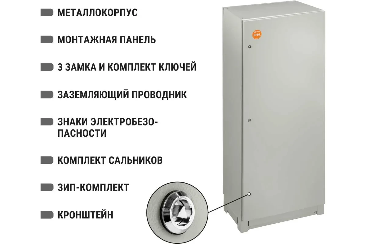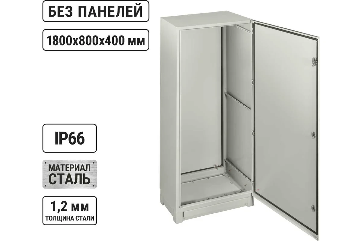 Щит предназначен для напольного монтажа, имеет размеры 1800х800х400 мм и степень защиты IP66, что обеспечивает повышенную стойкость к коррозии, пыли, а также защиту от влаги. Корпус щита выполнен из оцинкованной стали толщиной 1,2 мм, а его покрытие - из текстурированного полиэстерового порошка. В комплекте с щитом идут аксессуары, такие как элементы заземления на корпусе, дверце и монтажной панели, полностью проваренные швы и кронштейн для крепления к стене. Замок с ключом обеспечивает безопасность и сохранность содержимого щита. Модельный ряд: ЩМП Степень защиты: 66 IP Материал рамы: сталь Материал дверцы: сталь Материал корпуса: сталь Высота: 1800 мм Ширина: 600 мм Глубина: 400 мм Замок: есть Цвет: серый Габариты без упаковки: 600х400х1800 мм Вес нетто: 58.1 кг