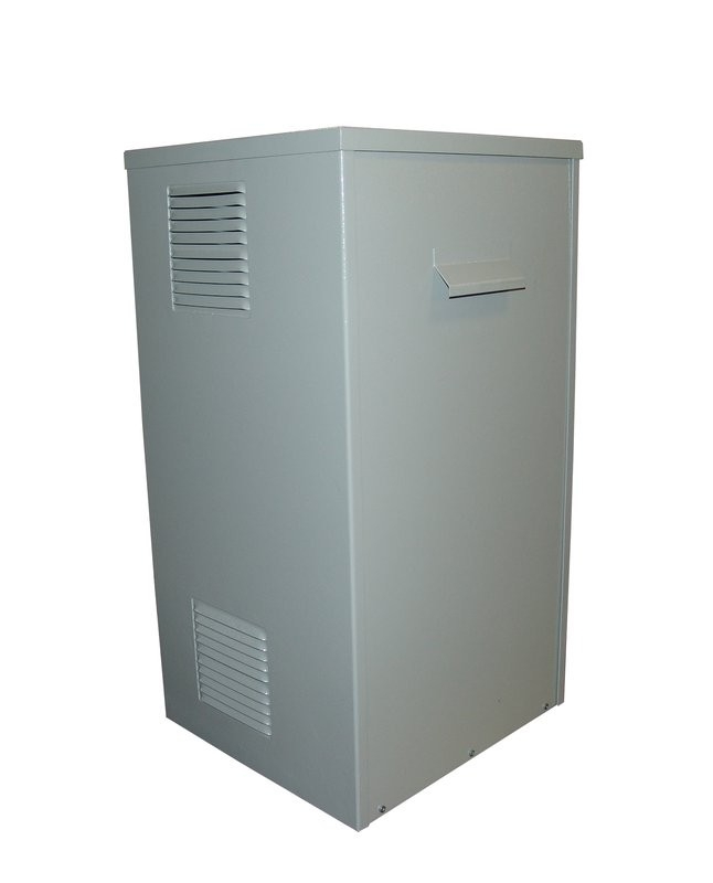 Металлический шкаф LIDER Ш1/3 12 для однофазных стабилизаторов Шкаф представляет собой металлическую конструкцию прямоугольной формы навесного исполнения. Шкаф предназначен для размещения стабилизатора напряжения переменного тока мощностью от 3000 ВА до 12000 ВА. Внутри размещен клеммный блок для подключения сети и нагрузки, автоматические выключатели стабилизатора и байпаса. Габариты, мм (ШхГхВ: 372х352х735 Масса, не более, кг: 19 Класс защиты: IP22 В конструкции металлического шкафа предусмотрено крепление к столбу уличного освещения, опоре рекламного щита. Примечание: отдельно без стабилизаторов данная продукция не выпускается. Возможно исполнение шкафа с проушинами для крепления на стену, стойку.