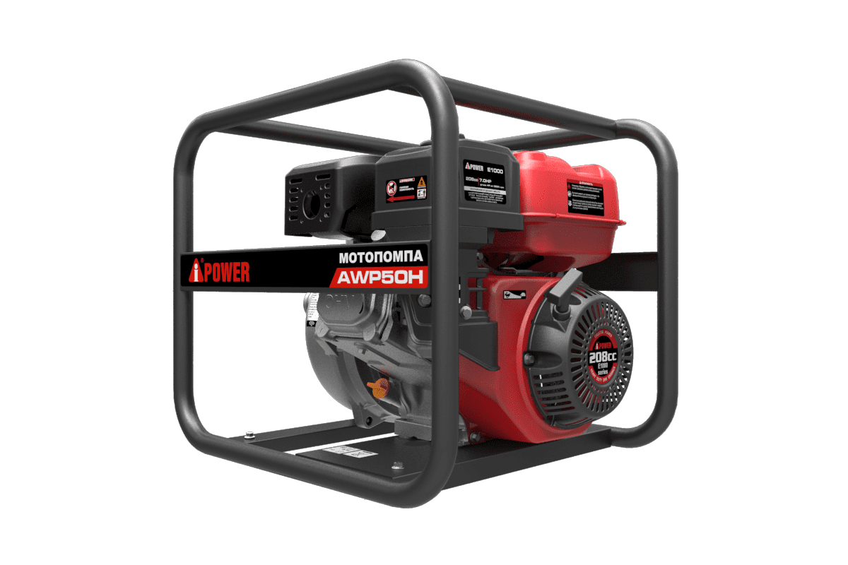 Бензиновая мотопомпа для грязной воды A-iPower AWP50H поможет Вам справиться с затопленным погребом, подвалом, нижними этажами здания, котлованом расположенным на удалении или глубине относительно от места перекачки воды. Устройство незаменимо при частых прорывах водопровода, сходе снега и паводках, может устанавливаться в частные дома и загородные коттеджи. Мотопомпа работает на бензине АИ-92, обеспечивает быструю перекачку грязной воды со скоростью 497 л/мин. Область применения для откачки с глубины не более 8 метров, с подъемом столба на высоту до 51 метров. Если загрузить агрегат на 100%, время непрерывной работы составит 2,2 часа. 4-х тактный OHV-двигатель с объемом бака 3,6 л расходует 1,4 л за час работы. Воздушное охлаждение не дает бензиновой мотопомпе перегреться даже при абсолютной загрузке. Модель A-iPower AWP50Н имеет массивное прямоугольное основание, которое обеспечивает устойчивость, благодаря чему агрегат можно располагать на любой поверхности: земле, досках, цементном полу. Скругленные углы повышают безопасность даже при случайном ударе Вы не получите ссадин и порезов. Двигатель Серия: AP170F Тип: 4-тактный, OHV Скорость вращения (макс./ном), об/мин: 3800/3400 Мощность, кВт/л.с. при 3600 об/мин: 7 Материал двигателя: Сталь ST14 Тип топлива / класс: Бензин АИ-92 Наличие топливного фильтра: Да Тип масла, SAE: SAE 10W-40 Объем масляного картера, л: 0.6 Количество цилиндров: 1 Производитель карбюратора: YINBA Тип охлаждения: Воздушное Расход топлива при 100% нагрузке, л / час: 1,4 Материал топливопроводов: Акрилат Тип: Высоконапорная Размер грязевых частиц, мм: 10 Время всасывания жидкости, сек/м: 120 сек Температура перекачиваемой воды С: 40℃ Присоединительные диаметры входного/выходного патрубка, мм: 50/50 Материал импеллера (крыльчатки): Чугунный Материал прокладки сальника: Керамика Максимальная высота всасывания жидкости, м: 8 Максимальная высота подъема жидкости, м: 51 Производительность, л/мин: 475 Вес изделия, кг: 25,7 Вес в упаковке, кг: 29 Габаритные размеры упаковки, мм: 515*445*460 Габаритные размеры изделия (ДхШхВ), мм: 500*430*430 Материал профиля рамы: Стальная труба Сечение профиля рамы, мм: 25 Уровень шума на 7 м, дБ: 99 Время непрерывной работы при нагрузке 100%, ч: 2,2 Комплектация: Свечной ключ/Уплотнительные кольца/Соединительные фланцы и хомуты/Фильтр(Металлический)