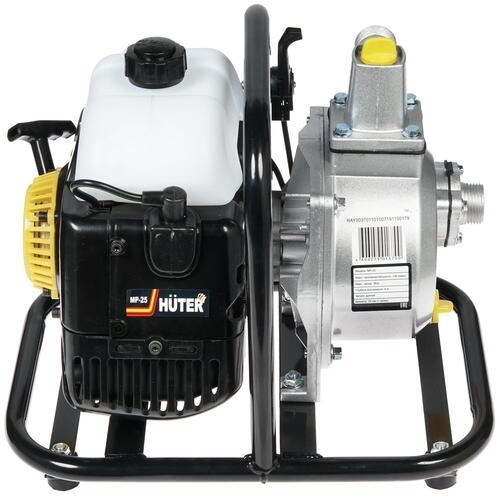 Мотопомпа Huter MP-25 установка, которая используется для перекачивания различных объемов чистой или отфильтрованной жидкости. Оборудование оснащается мощным двигателем, что позволяет перекачивать большие объемы воды за минимальное количество времени. Двигатель запускается при помощи ручной системы. Все элементы установки спроектированы таким образом, чтобы обеспечить простое применение вне зависимости от условий. Прочная металлическая рама гарантирует устойчивость к высоким нагрузкам и негативным эксплуатационным факторам. Для простоты хранения и транспортировки есть складная ручка. Технические характеристики: Мощность двигателя: 1,5 л.с. Тип двигателя: бензиновый Число тактов: 2 Объем двигателя: 43 см3 Тип топлива: бензин АИ-92 Способ охлаждения: воздушный Глубина всасывания: 8 м Высота подъема: 30 м Производительность: 130 л/мин Обороты: 8000 об/мин Тип воды: чистая Диаметр пропускаемых частиц: 5 мм Тип мотопомпы: центробежная Диаметр входного патрубка: 1 дюйм Диаметр выходного патрубка: 1 дюйм Объем топливного бака: 0,7 л Габаритные размеры, Д×Ш×В: 400x320x310 мм Масса, не более: 8,7 кг Преимущества Huter MP-25: возможность откачки воды с глубины более восьми метров; мощный двигатель на 1,5 лошадиных сил подходит для перекачивания более 130 литров любой воды за одну минуту; металлическая конструкция отличается устойчивостью, продлевая эксплуатационный срок оборудования; с помощью глушителя обеспечен оптимальный уровень шума в процессе работы. Комплектация: Мотопомпа 1 шт. Фильтр: 1 шт. Емкость для смешивания топливной смеси: 1 шт. Комплект инструментов и принадлежностей: 1 шт. Паспорт: 1 шт