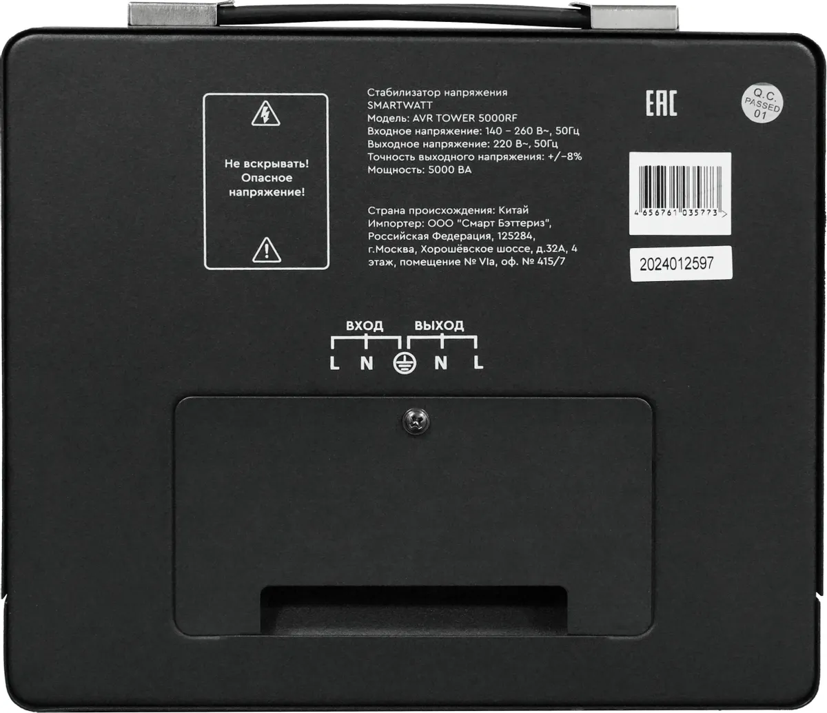 Напольный стабилизатор напряжения SMARTWATT AVR TOWER 5000RF предназначен для защиты бытовой техники, электроинструмента и прочего оборудования. Отличается удобством в использовании и надежной защитой. Среди особенностей модели релейное переключение при помощи микропроцессора, функция «ZeroCross», задержка на включение, встроенный байпас, расширенный дисплей индикации, напольный корпус. Категория: Стабилизаторы SMARTWATT серии TOWER; Производитель: SMARTWATT; Тип товара: Стабилизатор напряжения; Принцип работы: Релейный; Модельный ряд: TOWER; Напряжение: Однофазный; Мощность: 5000 ВА; Рабочий диапазон: 140 - 260 Вольт; Время отклика: 20 мс; Точность: 220 Вольт ± 8 %; Температура эксплуатации: от -10 до +40 °C; Установка: Напольный; Родина бренда / страна производства: Россия / Китай Габариты: 240х205х310; Вес изделия: 9.22 кг; Стабилизатор серии TOWER отличается удобством в использовании и надежной защитой 1) При изменении напряжения сети микропроцессорное управление и алгоритм переключений увеличивают скорость реакции и обеспечивают защиту нагрузки. 2) Функция «ZeroCross» выполняет переключение ступеней в момент протекания нулевого тока через реле. 3) Стабилизатор оснащен функцией задержки включения для защиты компрессоров, холодильников, систем кондиционирования и других устройств. 4) Встроенный байпас (в моделях более 3кВА) для удобства обслуживания. 5) ЖК-дисплей с индикацией входноговыходного напряжения, уровня нагрузки и аварийных ситуаций. 6) Система управления вентилятором