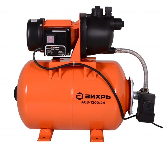 Автоматическая станция водоснабжения ВИХРЬ АСВ-1200/24Н применяется для подвода воды в систему водоснабжения дач, коттеджей, ферм. Агрегат оборудован производительным асинхронным двигателем мощностью 1200 Вт. При падении давления встроенный датчик автоматически включает насос. Вместительный резервуар (24 литра) сохраняет воду под давлением, чтобы не нагружать двигатель (не нужно постоянно закачивать воду) и сглаживать гидроудары. Специальные ножки придают устойчивость насосной станции. Для контроля уровня давления в системе предусмотрен барометр. Преимущества: Вместительный гидроаккумулятор. Алюминиевый переходной фланец. Встроенный датчик давления для автоматического включения насоса. Подъем воды на высоту до 40 м. Прочный металлический корпус. Реле давления. Манометр. Вес без упаковки, кг 12 Диаметр выходного отверстия, дюйм 1 Макс. производительность, л/ч 4200 Частота, Гц 50 Объем бака, л 24 Высота напора, м 40 Диаметр входного отверстия. мм 1 Глубина всасывания, м 9 Макс. температура воды, °C 35 Тип двигателя Электрический Материал Нержавейка Мощность, Вт 1200 Напряжение сети, В 220 Гарантия, мес. 12 Страна бренда Россия Страна производства Китай Вес 12.42 кг Класс защиты IP44 Максимальный потребляемый ток, А 5 Бренд Вихрь Габариты, см 52,3 х 33 х 59