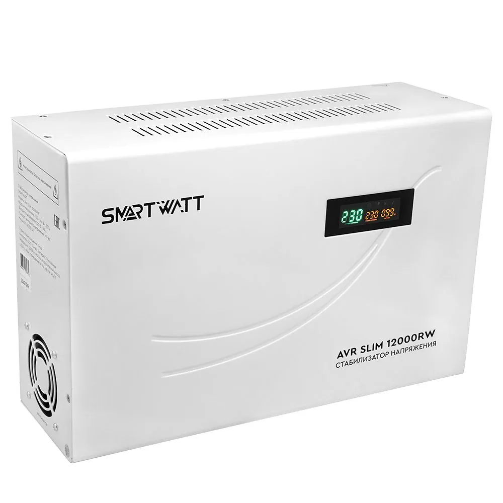 Настенный стабилизатор напряжения SMARTWATT AVR SLIM 12000RW имеет удобный конструктив и улучшенные технические характеристики. Среди особенностей модели стабилизация напряжения от 100В, компактный плоский корпус, релейное переключение при помощи микропроцессора, функция «ZeroCross», задержка на включения, встроенный байпас, расширенный дисплей индикации, возможность напольного и настенного размещения. Категория: Стабилизаторы SMARTWATT серии AVR SLIM; Производитель: SMARTWATT; Тип товара: Стабилизатор напряжения; Принцип работы: Релейный; Модельный ряд: SLIM; Напряжение: Однофазный; Мощность: 12000 ВА; Рабочий диапазон: 100 - 260 Вольт; Время отклика: 20 мс; Точность: 220 Вольт ± 8 %; Температура эксплуатации: от -10 до +40 °C; Установка: Настенный; Родина бренда / страна производства: Россия / Китай Габариты: 440х289х145; Вес изделия: 18.42 кг; Стабилизаторы серии SLIM отличается удобным конструктивом и улучшенными техническими характеристиками 1) За счет плоского тороидального трансформатора корпус стабилизатора имеет минимальную толщину для удобного размещения на вертикальной поверхности.