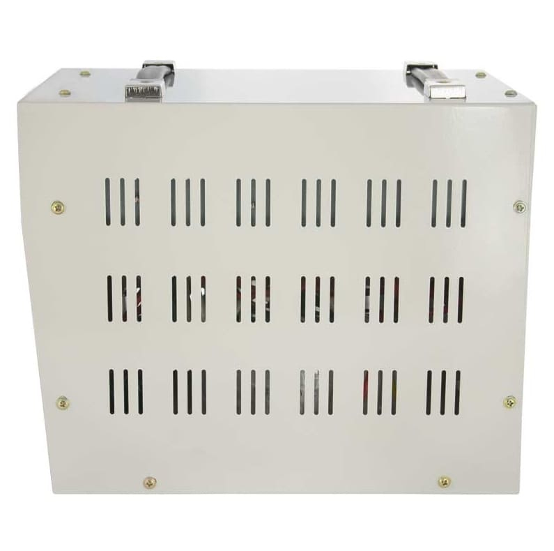 Недорогой Российский стабилизатор релейного типа с электронным управлением. Суммарная мощность нагрузки от 7 до 10 кВт. С небольшой погрешностью до 6 , с достаточно широким рабочим диапазоном напряжений на входе 140-260В и с функцией обхода стабилизатора БАЙПАС. Отличный вариант для установки в неотапливаемом помещении на дачном участке или в частном доме. Тип напряжения Однофазный Принцип стабилизации Релейный Мощность (кВА) 10 Режим работы Непрерывный Способ установки Напольный Тип охлаждения Воздушное (конвекционное и принудительное) Дисплей Цифровой Индикация Входное напряжение, Выходное напряжение, Сеть, Защита, Задержка, Ток нагрузки Подключение Клеммная колодка Режим "БАЙПАС" Есть Задержка включения 6 секунд, 180 секунд Предельный диапазон входных напряжений (В) 120-280 Рабочий диапазон входных напряжений (В) 140-260 Номинальное выходное напряжение (В) 220 Отклонение выходных напряжений ±8% Время реакции на изменение напряжения (мс) 4 Количество ступеней регулировки 5 Защита от повышенного напряжения, откл. при 280В Защита от пониженного напряжения, откл. при 120В Защита от перегрева трансформатора, откл. при 120 °С Защита от перегрузки по току Автоматический выключатель (ручной возврат в рабочий режим) Степень защиты от внешних воздействий по ГОСТ 14254-96 IP20 Температура эксплуатации (°С) -20...+40 Температура хранения (°С) -40...+45 Относительная влажность (%) 95 КПД при полной нагрузке (%) 98 Габаритные размеры (мм) 360x225x250 Вес (кг) 13.2 Вес брутто (кг) 13.7 Гарантия 12 месяцев Расчетный срок службы 10 лет Применение Для дачи, Для частного дома