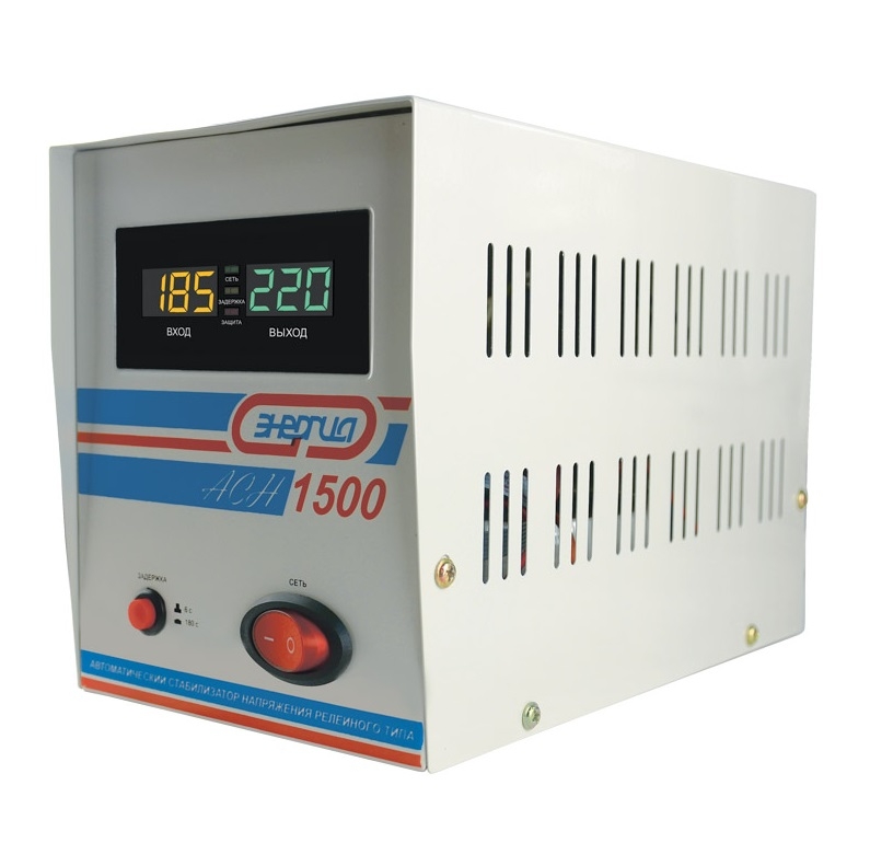 Полностью автоматический стабилизатор напряжения релейного типа. Подходит для защиты практически любой бытовой техники суммарной мощностью не превышающей 1,5 кВА 1-1,5 кВт . Будь то телевизор, компьютер, небольшой одно-компрессорный холодильник. АСН 1500 обладает отличными характеристиками. Работает в очень широком диапазоне входных напряжений с высокой скоростью регулировки. Может эксплуатироваться при отрицательных температурах. Это разработка отечественного производителя ЭТК Энергия с гарантией 12 месяцев. Тип напряжения Однофазный Принцип стабилизации Релейный Мощность (кВА) 1,5 Режим работы Непрерывный Способ установки Напольный Тип охлаждения Воздушное (естественное) Дисплей Цифровой Индикация Выходное напряжение, Сеть, Защита, Задержка Подключение Вилка, розетка Колличество розеток 2 (220 В) Режим "БАЙПАС" Нет Задержка включения 6 секунд, 180 секунд Предельный диапазон входных напряжений (В) 120-280 Рабочий диапазон входных напряжений (В) 140-260 Номинальное выходное напряжение (В) 220 Отклонение выходных напряжений ±8% Время реакции на изменение напряжения (мс) 4 Количество ступеней регулировки 5 Защита от повышенного напряжения, откл. при 280В Защита от пониженного напряжения, откл. при 120В Защита от перегрева трансформатора, откл. при 120 °С Защита от перегрузки по току Автоматический выключатель (ручной возврат в рабочий режим) Степень защиты от внешних воздействий по ГОСТ 14254-96 IP20 Температура эксплуатации (°С) -20...+40 Температура хранения (°С) -40...+45 Относительная влажность (%) 95 КПД при полной нагрузке (%) 98 Габаритные размеры (мм) 250x150x185 Вес брутто (кг) 4,5 Гарантия 12 месяцев Расчетный срок службы 10 лет Применение Для телевизора, Для котла, Для компьютера