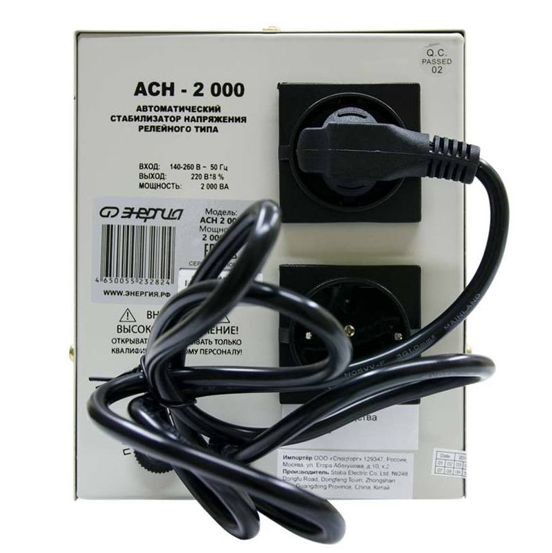 Новые стабилизаторы Энергия АСН пришли на смену хорошо зарекомендовавшим себя аппаратам Upower АСН. У них осталось хорошее соотношение цена/качество. Конструктивные изменения коснулись платы управления, она выполнена по новой технологии монтажа электронных компонентов. В стабилизаторах АСН установлены современные электронные реле с большим ресурсом эксплуатации и высокой скоростью работы. Тип напряжения: Однофазный Принцип стабилизации: Релейный Мощность (кВА): 2 Режим работы: Непрерывный Способ установки: Напольный Тип охлаждения: Воздушное (естественное) Дисплей: Цифровой Индикация: Выходное напряжение / Сеть / Защита / Задержка Подключение: Вилка, розетка Режим "БАЙПАС": Нет Задержка включения: 180 секунд / 6 секунд Предельный диапазон входных напряжений (В): 120-280 Рабочий диапазон входных напряжений (В): 140-260 Номинальное выходное напряжение (В): 220 Отклонение выходных напряжений: ±8% Время реакции на изменение напряжения (мс): 4 Количество ступеней регулировки: 5 Защита от повышенного напряжения, откл. при: 280В Защита от пониженного напряжения, откл. при: 120В Защита от перегрева трансформатора, откл. при: 120 °С Защита от перегрузки по току: Автоматический выключатель (ручной возврат в рабочий режим) Степень защиты от внешних воздействий по ГОСТ 14254-96: IP20 Температура эксплуатации (°С): -20...+40 Температура хранения (°С): -40...+45 Относительная влажность (%): 95 КПД при полной нагрузке (%): 98 Габаритные размеры (мм): 250x150x185 Вес брутто (кг): 5