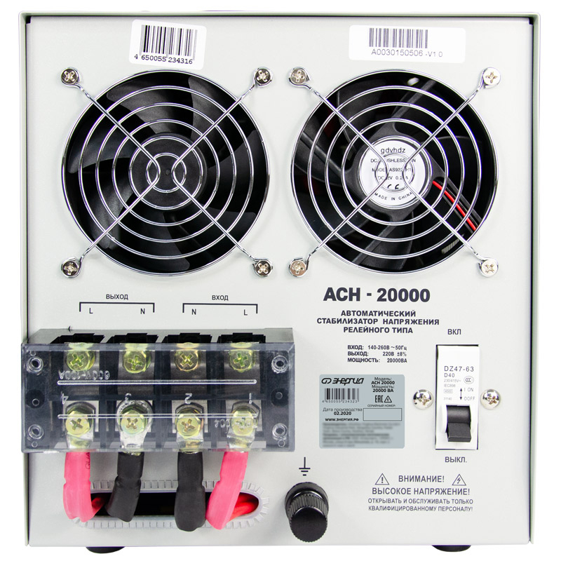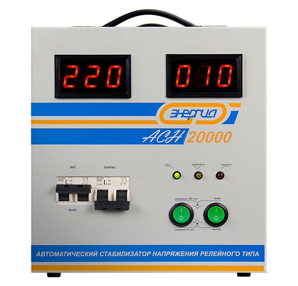 Напольный стабилизатор релейного типа с нагрузкой 14-20 кВт / 20 кВА. Применяется в однофазных сетях как в частных домах, так и на дачных участках. Адаптирован под Российские электросети. Можно эксплуатировать при минусовых температурах. Обладает высокой скоростью реакции на изменение напряжения 4 м/сек и широким рабочим диапазоном напряжений на входе 140-260 В. Тип напряжения Однофазный Принцип стабилизации Релейный Мощность (кВА) 20 Режим работы Непрерывный Способ установки Напольный Тип охлаждения Воздушное (конвекционное и принудительное) Дисплей Цифровой Индикация Входное напряжение, Выходное напряжение, Сеть, Защита, Задержка, Ток нагрузки Подключение Клеммная колодка Режим "БАЙПАС" Есть Задержка включения 6 секунд, 180 секунд Предельный диапазон входных напряжений (В) 120-280 Рабочий диапазон входных напряжений (В) 140-260 Номинальное выходное напряжение (В) 220 Отклонение выходных напряжений ±8% Время реакции на изменение напряжения (мс) 4 Количество ступеней регулировки 5 Защита от повышенного напряжения, откл. при 280В Защита от пониженного напряжения, откл. при 120В Защита от перегрева трансформатора, откл. при 120 °С Защита от перегрузки по току Автоматический выключатель (ручной возврат в рабочий режим) Степень защиты от внешних воздействий по ГОСТ 14254-96 IP20 Температура эксплуатации (°С) -20...+40 Температура хранения (°С) -40...+45 Относительная влажность (%) 95 КПД при полной нагрузке (%) 98 Габаритные размеры (мм) 390х225х250 Вес (кг) 20 Вес брутто (кг) 22 Гарантия 12 месяцев Расчетный срок службы 10 лет Применение Для дачи, Для частного дома