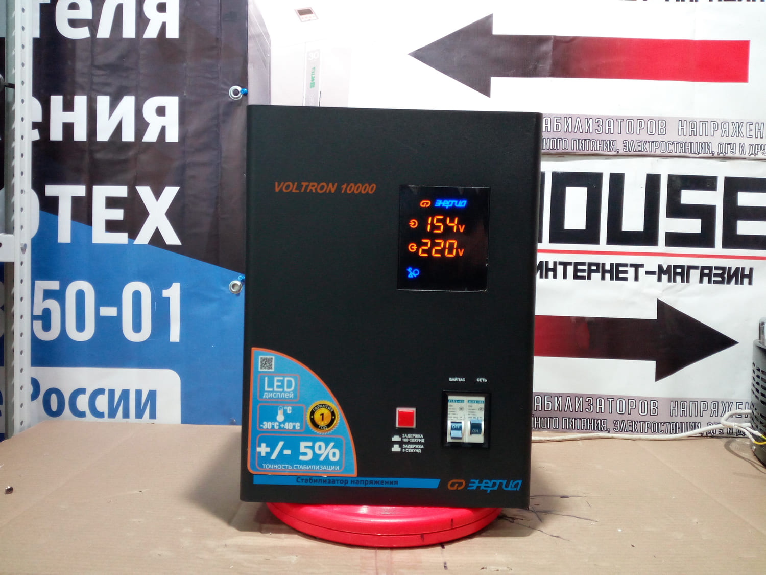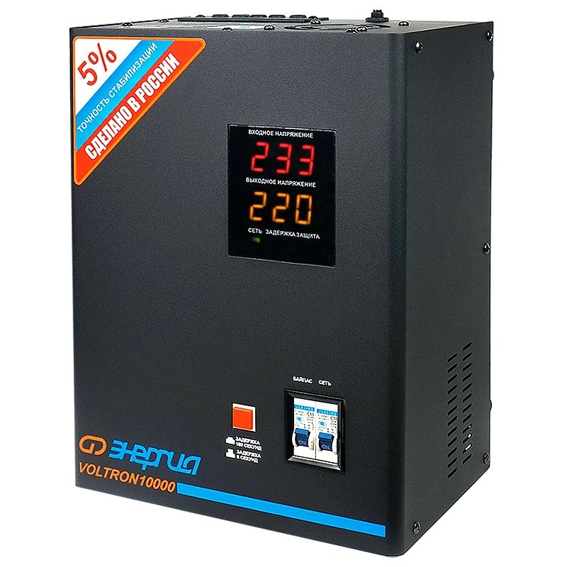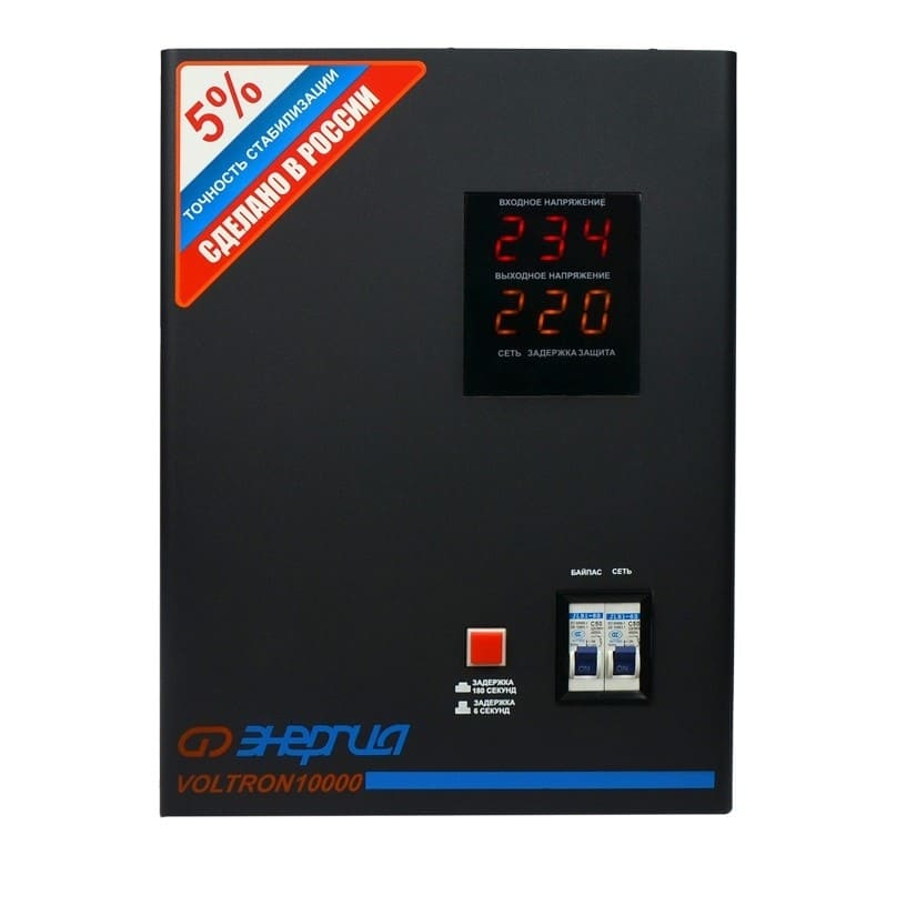 Энергия Voltron 10000 с маркировкой HP это высокоточный стабилизатор релейного типа с погрешностью выходного напряжения не превышающей 5 . Как и стабилизаторы из предыдущей серии Voltron РСН , Вольтрон 10000 НР, прекрасно работает в неотапливаемых помещениях при температуре до -30 градусов и в очень больших диапазонах входных напряжений. Тип напряжения: Однофазный Принцип стабилизации: Релейный Мощность (кВА): 10 Максимальный ток (А): до 45 Режим работы: Непрерывный Способ установки: Напольный, Настенный Тип охлаждения: Воздушное (конвекционное и принудительное) Дисплей: Цифровой Индикация: Входное напряжение, Выходное напряжение, Сеть, Защита, Задержка Подключение: Клеммная колодка Режим "БАЙПАС": Есть Задержка включения: 6 секунд, 180 секунд Предельный диапазон входных напряжений (В): 95-280 Рабочий диапазон входных напряжений (В): 105-265 Номинальное выходное напряжение (В): 220 Отклонение выходных напряжений: ±5% Время реакции на изменение напряжения (мс): 10 Защита от повышенного напряжения, откл. при: 280В Защита от пониженного напряжения, откл. при: 95В Защита от перегрева трансформатора, откл. при: 120 °С Защита от перегрузки по току: Автоматический выключатель Степень защиты от внешних воздействий по ГОСТ 14254-96: IP20 Температура эксплуатации (°С): -30...+40 Температура хранения (°С): -40...+45 Относительная влажность (%): 95 КПД при полной нагрузке (%): 98 Габаритные размеры (мм): 360х270х175 Вес (кг): 19,4