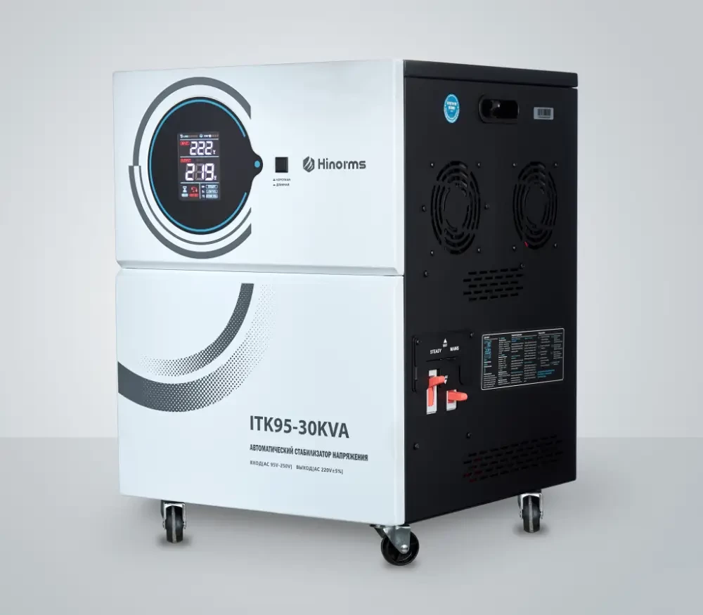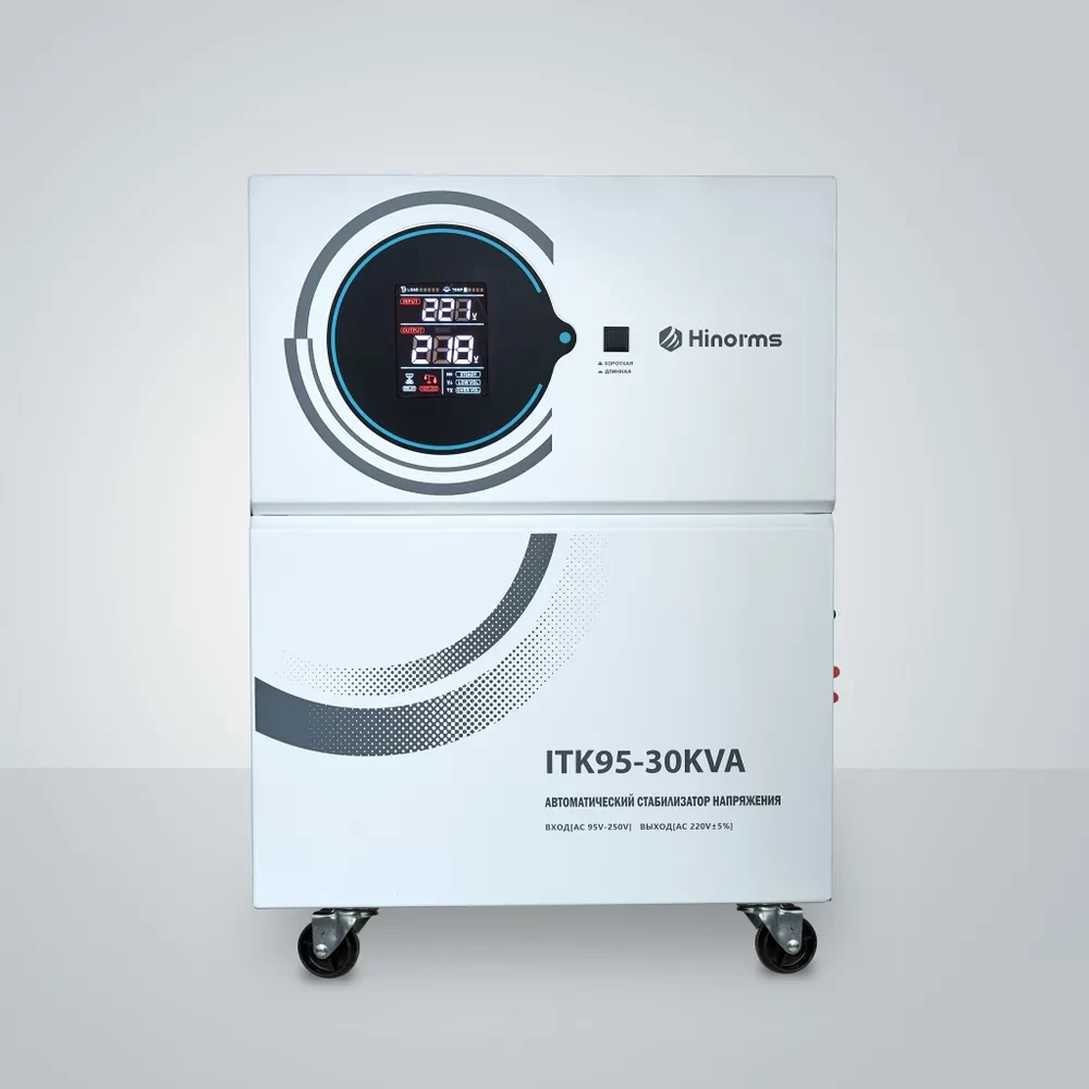 Тиристорные стабилизаторы напряжения Hinorms ITK95-30 кВА - это мощное, современное и надежное устройство для поддержания напряжения в сети, с подключаемой нагрузкой до 30000 ВА, в широком диапазоне работы от 90 до 260 Вольт и с отклонением выходного напряжения не более 5%. Стабилизаторы корректирую напряжение абсолютно бесшумно, что позволяет их размещать в жилых помещениях. Отлично решение для защиты частных домовладений, не больших предприятий и промышленных объектов. Тип стабилизатора: тиристорный Тип сети: однофазная Полная мощность: 30000 ВА, 30 кВА (~24 кВт) Максимальный входной ток: 135 А КПД при полной нагрузке: 95 % Рабочий диапазон входных напряжений: 95 - 250 Вольт Предельный диапазон входных напряжений: 80 - 280 Вольт Номинальное выходное напряжение: 220 Вольт Отклонение выходных напряжений: ± 5 % Задержка включения: 200 или 5 сек Частота: 50 - 60 Гц Режим "БАЙПАС": есть Режим работы: непрерывный Тип охлаждения: конвекционное и принудительное Дисплей: LED-дисплей Индикация: входное напряжение / выходное напряжение / сеть / защита / задержка Время реакции на изменение напряжения: 30 мс Относительная влажность: 0 - 80 % (без конденсата) Температура эксплуатации: -20...+40 °С Способ установки: напольный Подключение: через клеммную колодку Размеры: 500х450х420 мм Вес: 50 кг Преимущества: Тиристорный силовой ключ. Надежность и молниеносная скорость реакции электронных ключей на отклонение напряжения. Отсутствие движущихся частей и ненадежных реле. Широкий диапазон входных напряжений. Работают даже в самых проблемных сетях. Стабилизируют напряжение при скачках до 280В и просадках до 80В. Высокая точность. Погрешность выходного напряжения всего 5%. Это точнее, чем требования ГОСТ. Подходит даже для самых требовательных и чувствительных приборов. Выдерживают высокие пусковые токи. Высокая перегрузочная способность до 200% для устройств с высокими пусковыми токами (насосы, компрессоры, станки и т.п) Чистая синусоида. Не вносят искажений, помех и гармоник высшего порядка, оставляя синусоиду напряжения идеально чистой. Отлично подходит для чувствительной техники. Высокая эффективность. Низкое собственное потребление и высокая энергоотдача. Меньше выделения тепла, меньше потери мощности. Полный спектр защитных систем. Защита от аномальных напряжений, перегрева, короткого замыкания и перегрузки. 100% защита как приборов, так и самого стабилизатора Подходят для любой нагрузки. Для бытового или промышленного применения. Одинаково хорошо работают с резистивной, индукционной, емкостной и смешанной нагрузкой Компания Hinorms, производитель стабилизаторов напряжения, с 2001 года поставляет продукцию в 80 стран. Продукция компании включает в себя множество типов устройств, таких как стабилизаторы напряжения, преобразователи и т. д. Стабилизаторы Hinorms по праву занимаю нишу в категории "цена - качество", создавая конкуренцию более именным на отечественном рынке товарам без потери качества.