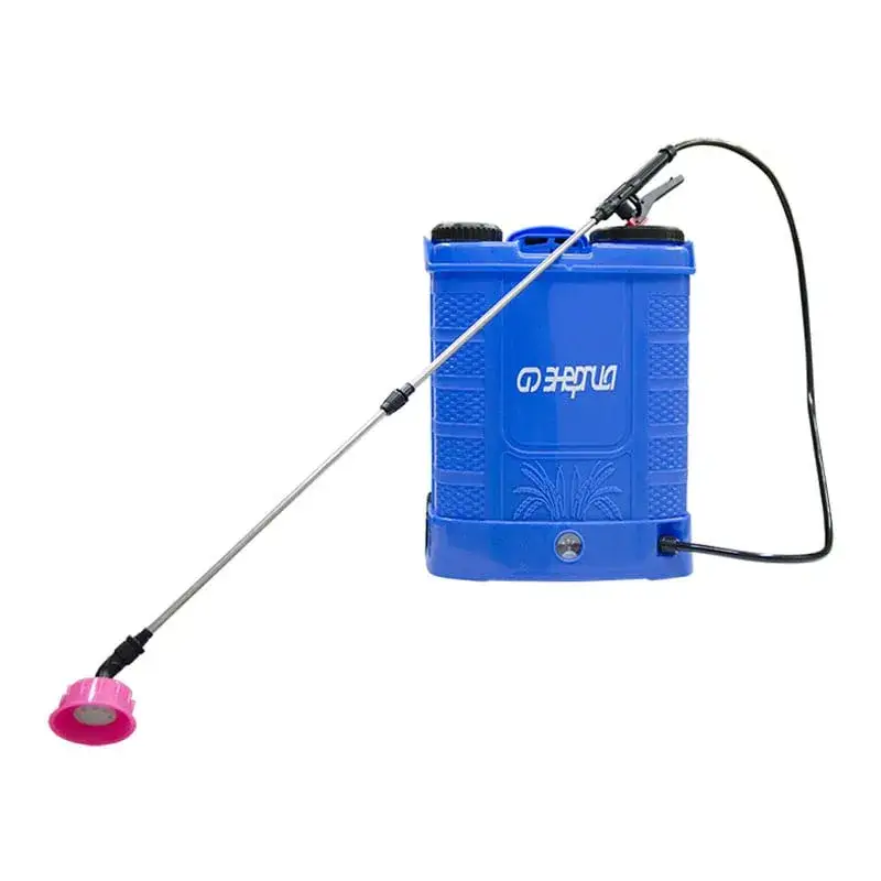 Аккумуляторный ранцевый опрыскиватель Энергия ZX предназначен для химической защиты растений от вредителей и болезней, борьбы с сорной растительностью, распыления воды, удобрений, гербицидов, пестицидов, противоэпидемической обработки скота. Опрыскиватель также может использоваться для мытья окон Артикул Е1901-0002 Производитель Энергия Cтрана производства Китай Гарантия 12 месяцев Расчетный срок службы 10 лет Тип опрыскивателя Ранцевый Тип насоса Диафрагмовый гидронасос Привод насоса Электродвигатель В 12 Источник питания двигателя Аккумулятор 8Ач 12В, Объем бака 14 литров Время непрерывной работы, не менее 6 ч Производительность насоса 0,5-1,15 л/мин. Рабочее давление 0,2-0,4 мПа Материал удочки Нержавеющая сталь Регулировка длины удочки от 50 до 85 см Габаритные размеры (мм) 380х205х470 Вес (кг) 5 Вес брутто (кг) 5,2