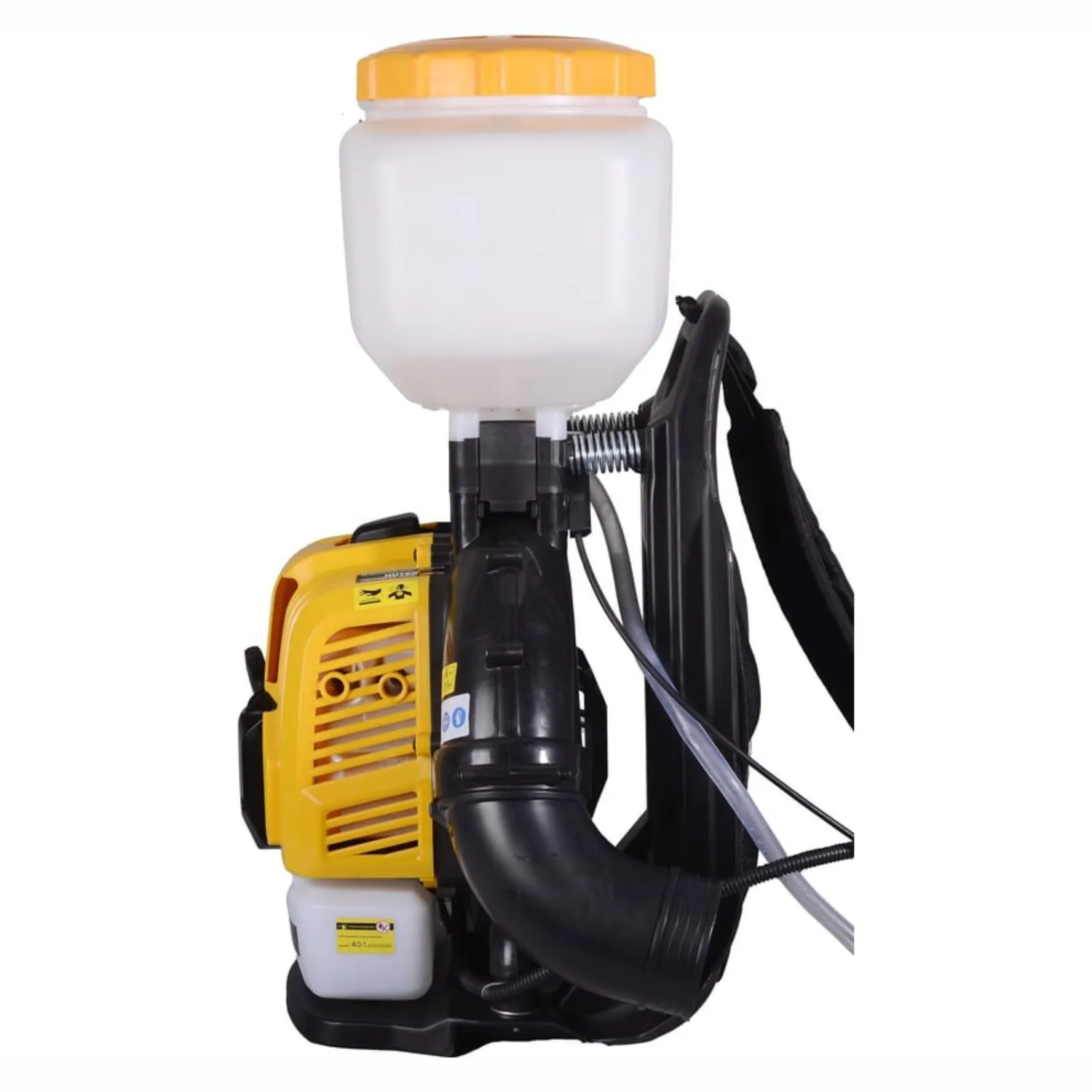Бензиновый опрыскиватель предназначена для подачи большого объема смеси воздуха и распыляемой жидкости. Принцип работы устроен таким образом, что крутящий момент от вращающегося вала двигателя передается на крыльчатку вентилятора. Крыльчатка вентилятора при вращении засасывает воздух через заборные отверстия и нагнетает его через напорную трубу. Мощный поток воздуха является средством транспортировки химикатов в жидком виде. Тип двигателя Одноцилиндровый, двухтактный, бензиновый двигатель с воздушным охлаждением Объем топливного бака, л 1.5 Объём двигателя, см3 52 Гарантия, мес. 12 Бренд Huter Вес 13.08 кг Дальность распыления жидкости, м 15 Объем бака для распыления, л 14 Максимальная мощность двигателя 2.0 кВт Максимальная скорость воздуха, м/с 88 Габариты упаковки 0.529 × 0.529 × 0.529 м Способ запуска Ручной, пружинный стартер Свеча L7TC Зажигание Электронное (CDI) Комплектация Двигатель в сборе 1 шт; Патрубок для выдува гибкий 1 шт; Прямая труба 1 шт; Сопло 1 шт; Решетка сопла (зависит от модели и комплектации) - 1 шт; Емкость для приготовления смеси (зависит от модели и комплектации) - 1 шт; Инструмент для сборки устройства - 1 шт; Руководство по эксплуатации.