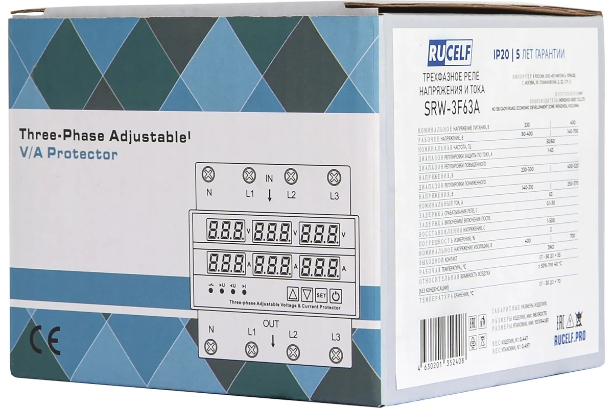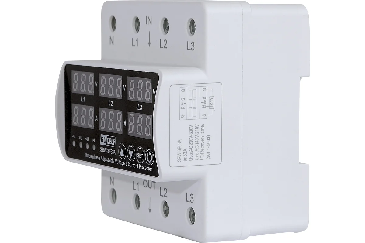 Трехфазное реле напряжения RUCELF SRW-3F63A обеспечивает точный контроль качества питания сети и стабилизацию напряжения, что важно для правильной работы чувствительной техники. Оно автоматически отключает цепь электропитания при повышении заданного уровня напряжения. Это гарантирует безопасность работы электрооборудования и позволяет избежать повреждения подключенных устройств. Количество фаз: 3 Номинальный ток: 63 А Номинальное напряжение: 230/400 В Контактная группа: 3NO Степень защиты: IP20 Индикация: LED-дисплей Способ монтажа: на Din-рейку Климатическое исполнение: УХЛ4 Вес нетто: 0.447 кг Габариты без упаковки: 96х90х75 мм мм Задержка отключения: есть TrueRMS: нет Термозащита: нет Ширина в юнитах: 2 Дополнительные характеристики: Максимальный ток нагрузки: 63А Максимальная мощность нагрузки: 14,5/25,2 кВт Нижний предел напряжения: 80/140 В Верхний предел напряжения: 400/700 В Номинальное рабочее напряжение: 230/400 В Частота: 50/60 Гц Задержка включения нагрузки: 1-500 с Диапазон рабочих температур: от -50 до +55 Материал корпуса: поликарбонат, не поддерживающий горение Степень защиты: IP20 Размеры изделия: 96х90х75 мм Вес изделия: 0,447 кг