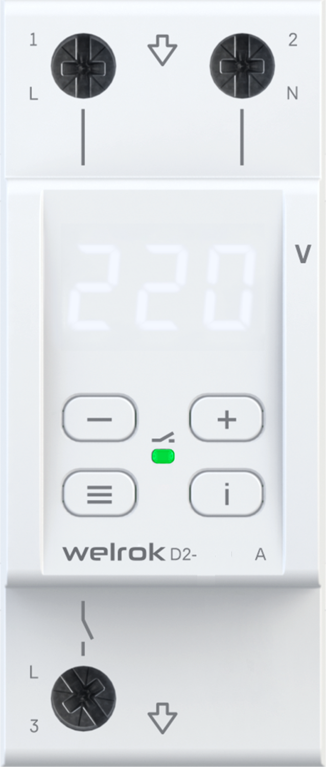 40 А (max 50 A), 8 800 ВА 40 А (max 50 A), 8 800 ВА Реле напряжения Welrok D2 защищает оборудование от скачков и провалов напряжения, обрыва нулевого провода. Реле отключает нагрузку, если сетевое напряжение выходит за установленные пределы. Когда значение напряжения вернется в норму, нагрузка будет автоматически включена обратно. Гарантия 10 лет Welrok D2 компактное реле на 2 модуля с мощным функционалом: ● Скорость срабатывания реле < 0,03 сек. ● TrueRMS для точного измерения напряжения Для уменьшения количества срабатываний: ● Защита от частых срабатываний ● Регулируемый гистерезис ● Регулируемая задержка включения нагрузки ● Профессиональная модель отключения при выходе напряжения за пределы Для анализа питающей сети по характеру аварийных срабатываний: ● Журнал срабатываний на 100 значенийДля комфортной и безопасной эксплуатации: ● Поправка напряжения на экране ● Регулировка яркости экрана ● Защита от перегрева Номинальный ток, А: 40 Управление: кнопочное Гарантийный срок, лет: 10 Серия: D2 Цвет индикатора: белый Способ монтажа: на DIN-рейку Номинальная мощность нагрузки для категории АС-1: 8 800 ВА Пределы напряжения: верхний 220280 В; нижний 120210 В Время отключения при превышении напряжения: не более 0,03 с Время отключения при понижении: 0,110 c (> 120 В); не более 0,03 с (< 120 В) Напряжение питания: не менее 100 В; не более 420 В Энергопотребление: не более 0,35 кВт*ч / мес Количество коммутаций под нагрузкой / без нагрузки: не меньше 10 000 циклов / не меньше 500 000 циклов Тип реле: поляризованное Подключение: 2 не более 16 мм² Масса / габаритные размеры (ш × в × г): 0,17 кг ±10 % / 36 х 85 х 66 мм Степень защиты по ГОСТ 14254: IP20