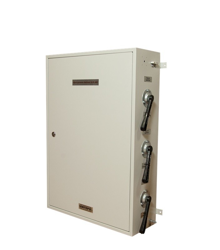Щит коммутации с ручным байпасом по каждой фазе без контроля трехфазного выхода Коммутация в обход стабилизатора отдельно по каждой фазе Мощность 150000 ВА Габаритные размеры 895х365х1105мм ШхГхВ