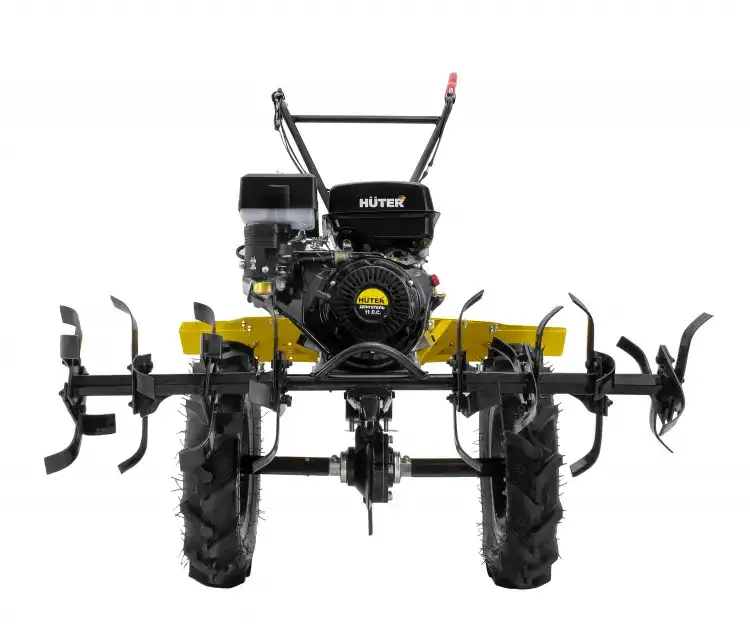 Мотоблок HUTER MK-11000(M) используется для обработки почвы методом культивации, то есть её рыхления без переворота почвы, выравнивания, других операций. Агрегат дает хорошие результаты на приусадебных и фермерских хозяйствах и дачных участках, на ограниченных территории, междурядьях, на клумбах и возле деревьев. Устройство - Двигатель. На мотоблоках HUTER применяются бензиновые двигатели внутреннего сгорания. Двигатели культиваторов снабжаются автоматическими регуляторами частоты вращения, упрощающими работу оператора. Диапазон номинальной мощности линейки наших культиваторов позволяет выбрать подходящий для любых видов работ. - Сцепление и редуктор обеспечивают передачу вращающего момента от двигателя на рабочий вал. - Система агрегатирования предназначена для сопряжения мотоблока с навесным оборудованием, которое устанавливается на рабочую ось или раму. Тип двигателя Бензиновый Мощность, л.с. 11 Скорости 2 вперед / 1 назад Ширина обработки, мм 1150 Диаметр фрез, см 32 Объем топливного бака, л 6 Бренд Huter Страна бренда Германия Страна производства Китай Задний ход Да Двигатель 4-х тактный, одноцилиндровый Вес 140 кг Гарантия, мес. 24 Технические характеристики - Мощность определяет производительность культиватора. Чем мощнее двигатель установлен на культиватор, тем более жесткую почву и большую глубину он может обрабатывать. - Скорости позволяют выбрать подходящий диапазон для более качественной обработки почвы, а также облегчают извлечение из земли агрегата после окончания работ посредством задней передачи. - Ширина обработки зависит от установленных лезвий, может достигать до 85 см со стандартными лезвиями и до 120см с дополнительными. Чем больше ширина обработки, тем эффективней работа культиватора. Но бывает необходимо вспахивать узкие полоски земли, для чего лезвия имеют составное устройство, т.е. есть возможность обрабатывать полосы шириной 30 и 50см. - Глубина обработки зависит от мощности двигателя и установленных лезвий. Чем больше глубина обработки, тем более качественно и эффективно будет вспахана почва. - Объем топливного бака определяет время непрерывной работы культиватора без дозаправки.
