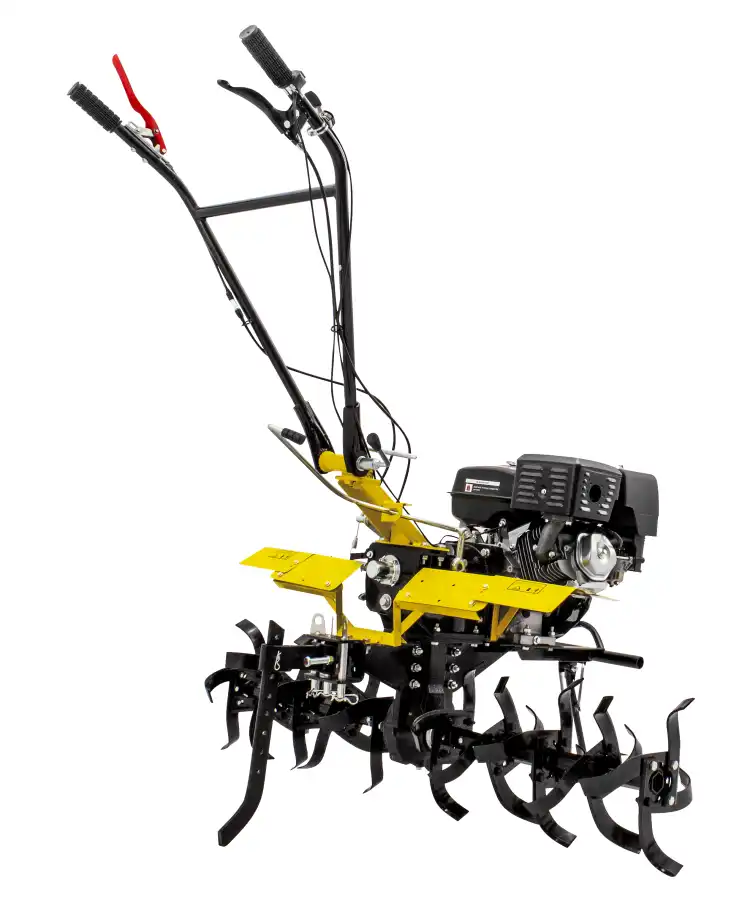 Сельскохозяйственная машина HUTER MK-15000 используется для обработки почвы методом культивации, то есть её рыхления без переворота почвы, выравнивания, других операций. Агрегат дает хорошие результаты на приусадебных и фермерских хозяйствах и дачных участках, на ограниченных территориях, междурядьях, на клумбах и возле деревьев. Устройство - Двигатель. На сельскохозяйственных машинах HUTER применяются бензиновые двигатели внутреннего сгорания. Двигатели культиваторов снабжаются автоматическими регуляторами частоты вращения, упрощающими работу оператора. Диапазон номинальной мощности линейки наших культиваторов позволяет выбрать подходящий для любых видов работ. - Сцепление и редуктор обеспечивают передачу вращающего момента от двигателя на рабочий вал. - Система агрегатирования предназначена для сопряжения машины с навесным оборудованием, которое устанавливается на рабочую ось или раму. - Система управления. Так как вовремя земляных работ оператор шагает за сельскохозяйственной машиной, все органы управления должны приводиться в действие только руками оператора. Тип двигателя Бензиновый Мощность, л.с. 15 Скорости 2 вперед / 1 назад Ширина обработки, мм 1400 Диаметр фрез, см 32 Вид топлива Бензин АИ-92 Объем топливного бака, л 6 Бренд Huter Страна бренда Германия Страна производства Китай Задний ход Да Двигатель 4-х тактный, одноцилиндровый Гарантия, мес. 24 Габариты упаковки мм 805 × 810 × 849 Вес 140 кг Комплектация Двигатель в сборе с рамой Рукоятка управления Комплект кронштейнов и лезвий для фрез в разборе Рукоятка переключения передач Комплект инструмента для сборки Крепежный комплект Защитные крылья в разборе Кронштейны для крыльев Технические характеристики - Мощность определяет производительность культиватора. Чем мощнее двигатель установлен на культиватор, тем более жесткую почву и большую глубину он может обрабатывать. - Скорости позволяют выбрать подходящий диапазон для более качественной обработки почвы, а также облегчают извлечение из земли агрегата после окончания работ посредством задней передачи. - Ширина обработки зависит от установленных лезвий, может достигать до 85 см со стандартными лезвиями и до 120см с дополнительными. Чем больше ширина обработки, тем эффективней работа культиватора. Но бывает необходимо вспахивать узкие полоски земли, для чего лезвия имеют составное устройство, т.е. есть возможность обрабатывать полосы шириной 30 и 50см.