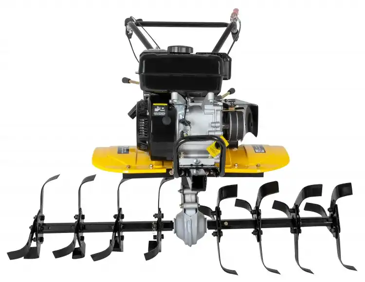 Сельскохозяйственная машина HUTER МК-7000P-10 используется для обработки почвы методом культивации, то есть её рыхления без переворота почвы, выравнивания, других операций. Агрегат дает хорошие результаты на приусадебных и фермерских хозяйствах и дачных участках, на ограниченных территориях, междурядьях, на клумбах и возле деревьев. Мотокультиватор укомплектован четырёхтактным двигателем внутреннего сгорания. Устройство - Двигатель. На сельскохозяйственных машинах HUTER применяются бензиновые двигатели внутреннего сгорания. Двигатели культиваторов снабжаются автоматическими регуляторами частоты вращения, упрощающими работу оператора. Диапазон номинальной мощности линейки наших культиваторов позволяет выбрать подходящий для любых видов работ. - Сцепление и редуктор обеспечивают передачу вращающего момента от двигателя на рабочий вал. - Система агрегатирования предназначена для сопряжения машины с навесным оборудованием, которое устанавливается на рабочую ось или раму. - Система управления. Так как вовремя земляных работ оператор шагает за сельскохозяйственной машиной, все органы управления должны приводиться в действие только руками оператора. Корпус редуктора Алюминиевый Разблокировка дифференциала Нет Тип воздушного фильтра С масляной ванной Тип привода Ременный Тип колес 4х10 Тип двигателя Бензиновый, 4-х тактный, одноцилиндровый Мощность, л.с. 7 Скорости 2 вперед / 1 назад Ширина обработки, мм 1000 Диаметр фрез, см 30 Объем топливного бака, л 3.6 Бренд Huter Страна бренда Германия Страна производства Китай Задний ход Да Гарантия, мес. 24 Габариты упаковки мм 640 × 640 × 640 Вес, кг 60 Технические характеристики - Мощность определяет производительность культиватора. Чем мощнее двигатель установлен на культиватор, тем более жесткую почву и большую глубину он может обрабатывать. - Скорости позволяют выбрать подходящий диапазон для более качественной обработки почвы, а также облегчают извлечение из земли агрегата после окончания работ посредством задней передачи. - Ширина обработки зависит от установленных лезвий, может достигать до 85 см со стандартными лезвиями и до 120см с дополнительными. Чем больше ширина обработки, тем эффективней работа культиватора. Но бывает необходимо вспахивать узкие полоски земли, для чего лезвия имеют составное устройство, т.е. есть возможность обрабатывать полосы шириной 30 и 50см. - Глубина обработки зависит от мощности двигателя и установленных лезвий. Чем больше глубина обработки, тем более качественно и эффективно будет вспахана почва. - Объем топливного бака определяет время непрерывной работы культиватора без дозаправки.