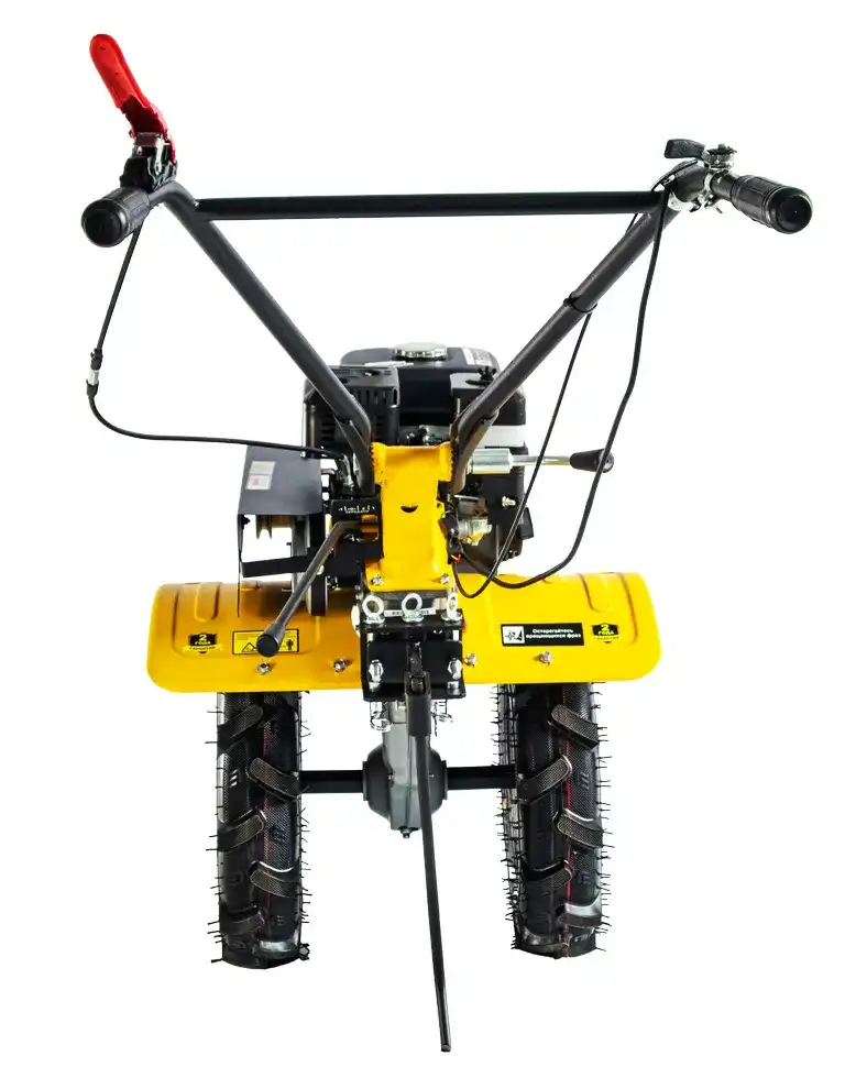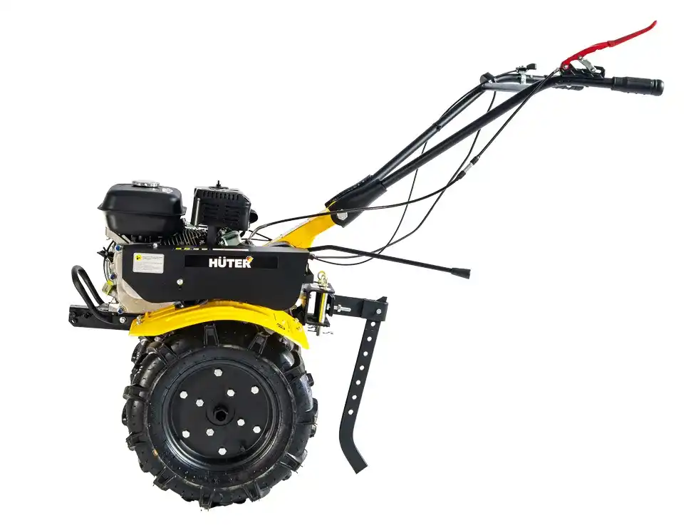 Сельскохозяйственная машина Huter МК-7000P-10-4х2 предназначена для обработки почвы: рыхления, боронования, выравнивания, прополки и других работ на личных приусадебных, огородных и садовых участках. Устройство мотокультиватора Двигатель. На СХМ HUTER применяются бензиновые двигатели внутреннего сгорания. Двигатели снабжаются автоматическими регуляторами частоты вращения, упрощающими работу оператора. Диапазон номинальной мощности линейки наших позволяет выбрать подходящий для любых видов работ. Сцепление и редуктор обеспечивают передачу вращающего момента от двигателя на рабочий вал. Система агрегатирования предназначена для сопряжения мотокультиватора с навесным оборудованием, которое устанавливается на рабочую ось или раму. Система управления. Так как вовремя земляных работ оператор шагает за мотокультиватором, все органы управления должны приводиться в действие только руками оператора. Двигатель Бензиновый, 4-х тактный, одноцилиндровый Мощность, л.с. 7 Скорости 4 вперед / 2 назад Ширина обработки, мм 1000 Диаметр фрез, см 30 Объем топливного бака, л 3.6 Бренд Huter Гарантия, мес. 24 Габариты упаковки мм 640 × 640 × 640 Вес, кг 60 Технические характеристики Мощность определяет производительность культиватора. Чем мощнее двигатель установлен на культиватор, тем более жесткую почву и большую глубину он может обрабатывать. Скорости позволяют выбрать подходящий диапазон для более качественной обработки почвы, а также облегчают извлечение из земли агрегата после окончания работ посредством задней передачи. Ширина обработки зависит от установленных лезвий. Чем больше ширина обработки, тем эффективней работа культиватора. Но бывает необходимо вспахивать узкие полоски земли, для чего лезвия имеют составное устройство, т.е. есть возможность обрабатывать полосы шириной 30 и 50см. Глубина обработки зависит от мощности двигателя и установленных лезвий. Чем больше глубина обработки, тем более качественно и эффективно будет вспахана почва. Объем топливного бака определяет время непрерывной работы культиватора без дозаправки.