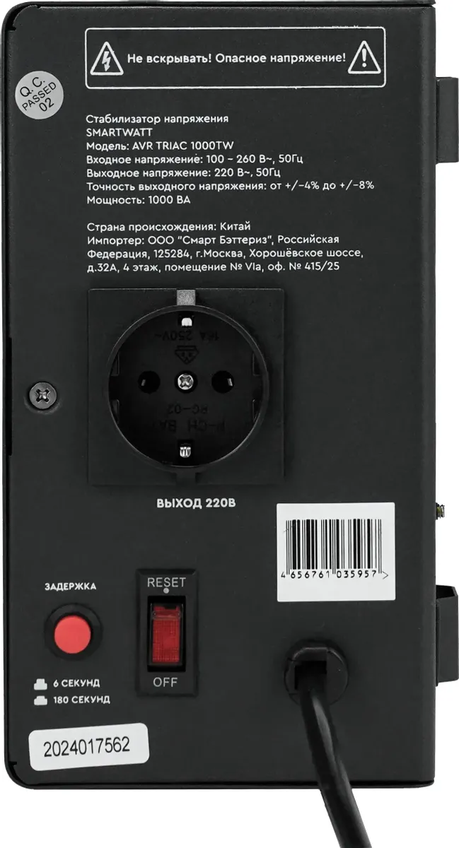 Симисторный стабилизатор напряжения SMARTWATT AVR TRIAC 1000TW в качестве ключей переключения используются симисторы. Симисторные стабилизаторы отличаются бесшумным переключением, отсутствием искрений, увеличенной скоростью переключения, долгим сроком службы. Среди особенностей серии стабилизация напряжения от 100В, высокая точность, плоский корпус, задержка на включение, расширенный дисплей индикации, напольное и настенное размещение. Категория: Стабилизаторы SMARTWATT серии AVR TRIAC; Производитель: SMARTWATT; Тип товара: Стабилизатор напряжения; Принцип работы: Симисторный; Модельный ряд: TRIAC; Напряжение: Однофазный; Мощность: 1000 ВА; Рабочий диапазон: 100 - 260 Вольт; Время отклика: 10 мс; Точность: 220 Вольт ± 4 %; Температура эксплуатации: от -10 до +40 °C; Установка: Настенный; Родина бренда / страна производства: Россия / Китай Габариты: 280х200х110; Вес изделия: 4.06 кг; В стабилизаторах серии TRIAC в качестве ключей переключения используются симисторы (симметричные триодные тиристоры). Симисторные стабилизаторы отличаются бесшумным переключением обмоток, отсутствием искрений при переключении, увеличенной скоростью переключений, долгим сроком службы. 1) За счет плоского тороидального трансформатора корпус стабилизатора имеет минимальную толщину для удобного размещения на вертикальной поверхности. 2) При изменении напряжения сети микропроцессорное управление и алгоритм переключений увеличивают скорость реакции и обеспечивают защиту нагрузки. 3) Стабилизатор, благодаря увеличенному количеству ступеней регулирования, эффективно выравнивает напряжение электросети в широком диапазоне (от 100 В до 260 В). 4) Стабилизатор оснащен функцией задержки включения для защиты компрессоров, холодильников, систем кондиционирования и других устройств. 5) Благодаря современной технологии намотки трансформатора стабилизаторы серии TRIAC обеспечивают высокую точность выходного напряжения с погрешностью 4% (при Uвх 140-250В) и 8%(при Uвх 100-260В). 6) Функция "ZeroCross" выполняет переключение ступеней в момент протекания нулевого тока. Переключение в момент «пересечения синусоиды через нулевую точку» не вносит искажений в форму синусоиды.