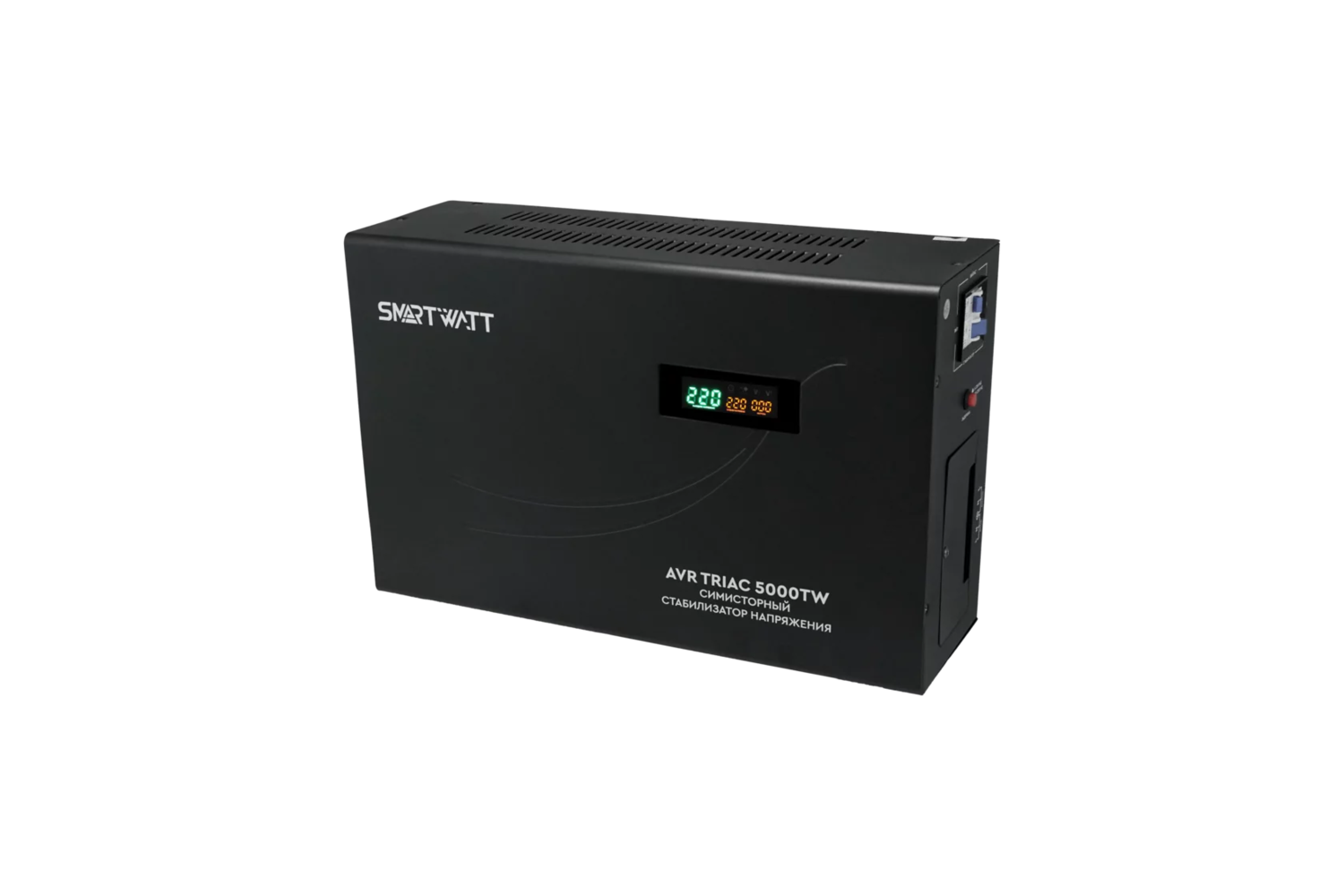Симисторный стабилизатор напряжения SMARTWATT AVR TRIAC 5000TW в качестве ключей переключения используются симисторы. Симисторные стабилизаторы отличаются бесшумным переключением, отсутствием искрений, увеличенной скоростью переключения, долгим сроком службы. Среди особенностей серии стабилизация напряжения от 100В, высокая точность, плоский корпус, задержка на включение, встроенный байпас, расширенный дисплей индикации, напольное и настенное размещение. Производитель: SMARTWATT; Тип товара: Стабилизатор напряжения; Принцип работы: Симисторный; Модельный ряд: TRIAC; Напряжение: Однофазный; Мощность: 5000 ВА; Рабочий диапазон: 100 - 260 Вольт; Время отклика: 10 мс; Точность: 220 Вольт ± 4 %; Температура эксплуатации: от -10 до +40 °C; Установка: Настенный; Родина бренда / страна производства: Россия / Китай Габариты: 440х289х145; Вес изделия: 14.20 кг; В стабилизаторах серии TRIAC в качестве ключей переключения используются симисторы (симметричные триодные тиристоры). Симисторные стабилизаторы отличаются бесшумным переключением обмоток, отсутствием искрений при переключении, увеличенной скоростью переключений, долгим сроком службы. 1) За счет плоского тороидального трансформатора корпус стабилизатора имеет минимальную толщину для удобного размещения на вертикальной поверхности. 2) При изменении напряжения сети микропроцессорное управление и алгоритм переключений увеличивают скорость реакции и обеспечивают защиту нагрузки. 3) Стабилизатор, благодаря увеличенному количеству ступеней регулирования, эффективно выравнивает напряжение электросети в широком диапазоне (от 100 В до 260 В). 4) Стабилизатор оснащен функцией задержки включения для защиты компрессоров, холодильников, систем кондиционирования и других устройств. 5) Благодаря современной технологии намотки трансформатора стабилизаторы серии TRIAC обеспечивают высокую точность выходного напряжения с погрешностью 4% (при Uвх 140-250В) и 8%(при Uвх 100-260В). 6) Функция "ZeroCross" выполняет переключение ступеней в момент протекания нулевого тока. Переключение в момент «пересечения синусоиды через нулевую точку» не вносит искажений в форму синусоиды.