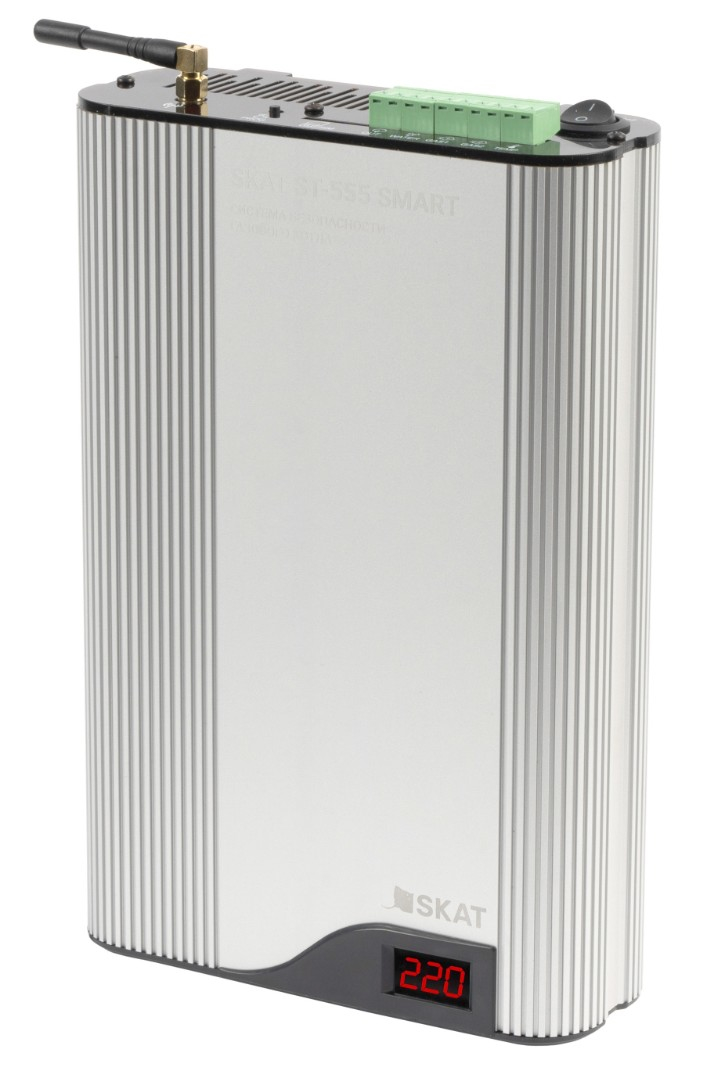 Установка газового котла в доме или квартире экономичное и удобное решение для индивидуального отопления и горячего водоснабжения. Однако оно сопряжено с целым набором рисков. Система безопасности SKAT ST-555 SMART разработана специально, чтобы обеспечить комплексную защиту газового котла у вас дома. Характеристики напряжения в режиме выход ~220В Напряжение питающей сети, частотой 50 Гц с пределами изменения, В: 110270 Выходное напряжение переменного тока, В при входном напряжении 130270 В: 200240, при входном напряжении 110130 В более 170 Выходное напряжение, при котором срабатывает защитное отключение нагрузки, В: менее 170, более 242 Характеристики напряжения в режиме выход ~230В Напряжение питающей сети, частотой 50 Гц с пределами изменения, В: 110280 Выходное напряжение переменного тока, В при входном напряжении 135280 В: 210250, при входном напряжении 110135 В более 170 Выходное напряжение, при котором срабатывает защитное отключение нагрузки, В: менее 170, более 253 Характеристики Максимальная мощность нагрузки (не более 15 мин в течение 1 часа), ВА, не более: 555 Номинальная мощность нагрузки, ВА: 400 Кратковременная перегрузка (при больших пусковых токах) до 3 минут, ВА, не более: 800 Мощность, потребляемая от сети, без нагрузки, ВА, не более: 6 Скорость срабатывания импульсной защиты по входу стабилизатора, нс, не более: 25 Максимальный разрядный ток импульсной защиты по входу стабилизатора (импульс 8/20 мкс)**, кА: 10 Пределы изменения нагрузки, %: 0100 Напряжение между «Землей» и «Нулем», при котором отображается на цифровом дисплее «GND», В: более 30±3 Задержка перед включением стабилизатора, сек: 5 Время переключения, мс, не более: 20 Степень защиты оболочкой по ГОСТ 14254-2015 IP20 Габаритные размеры ШхВхГ, мм, не более без упаковки: 270х170х70, в упаковке: 320x240x140 Масса, НЕТТО (БРУТТО), кг, не более: 3,4(3,8) Диапазон рабочих температур, °С: -10+40 Относительная влажность воздуха при 25 °С, %, не более: 80 Li-ion АКБ 18650 для резервирования GSM, мАч: 2600 (ВНИМАНИЕ! Не допускается наличие в воздухе токопроводящей пыли и паров агрессивных веществ (кислот, щелочей и т. п.)) Степень защиты оболочкой по ГОСТ 14254-2015 IP20 В состав системы входит сразу 5 устройств, позволяющих забыть обо всех страхах, связанных с работой газового котла. Стабилизатор напряжения. Защитит от основной причины поломки платы котла нестабильного напряжения в сети. Грозозащита. Устройство защиты от импульсных перенапряжений аварийно отключит котел в случае больших скачков напряжения и автоматически восстановит работу после возврата напряжения в норму. Датчик протечки. Установите его под котлом и система оповестит вас в случае разгерметизации труб, позволит вовремя предупредить возможную аварию. Датчик температуры. Будет фиксировать текущую температуру в комнате и позволит предотвратить замерзание или закипание труб. GSM-модуль. Это ваш двусторонний канал связи с котлом. Позволяет получать SMS-сообщения об аварийных ситуациях и запрашивать информацию о текущем состоянии системы. ОСОБЕННОСТИ Защита от импульсного, быстротекущего перенапряжения амплитудой до 10кВ без перегорания предохранителя (варисторная защита и газоразрядник); Защита от импульсного аварийного превышения напряжения (УЗИП); Стабилизация входящего напряжения в диапазоне 110-280 В; Проверка наличия потенциала на «земле»; Задержка подключения нагрузки 5 сек.; Установка номинального в