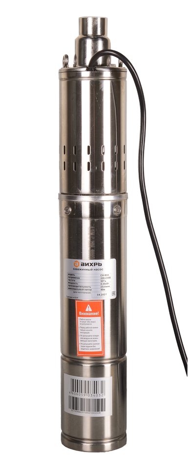 Электронасос бытовой скважинный предназначен для подачи воды в бытовых условиях из скважин, может использоваться также для подачи воды из шахтных колодцев, резервуаров и открытых водоемов для полива садов и огородов. Данный насос называют червячным или шнековым насосом по виду насосной части. Забор воды верхний. Преимуществом является низкая цена. Подходит для малодебетовых скважин. Напряжение питающей сети, В 220-230 Частота питающей сети, ГЦ 50 Мощность, Вт 550 Тип забора воды Верхний Максимальная высота подъема воды, м 90 Максимальная производительность, л/мин 25 Диаметр выходного отверстия, дюйм 1 Содержание песка не более, г/м³ 50 Диаметр насоса, дюйм 3,5 Длина кабеля, м 20 Конденсаторная коробка Нет Материал крыльчатки Металлический винт в резиновом корпусе Гарантия 1 год Бренд Вихрь Габариты упаковки 0.6 × 0.13 × 0.19 м Вес, кг 8.95 кг