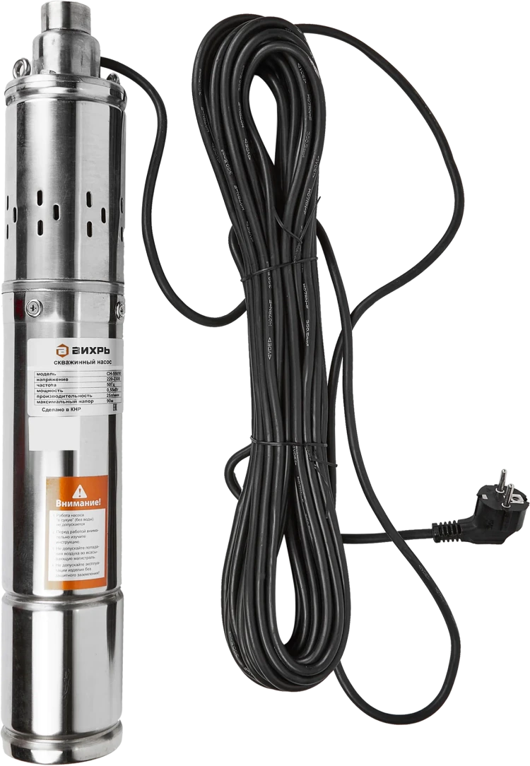 Электронасос бытовой скважинный предназначен для подачи воды в бытовых условиях из скважин внутренним диаметром от 85 мм и более, может использоваться также для подачи воды из шахтных колодцев, резервуаров и открытых водоемов для полива садов и огородов. атериал крыльчатки Хромированная сталь Вес, кг 8.9 кг Напряжение питающей сети, В: 220-230 Бренд: Вихрь Частота питающей сети, ГЦ: 50 Габариты упаковки: 0.6 × 0.195 × 0.13 м Мощность, Вт: 550 Максимальная высота подъема воды, м: 90 Максимальная производительность, л/мин: 25 Диаметр выходного отверстия, дюйм: 1 Диаметр насоса, дюйм: 3,5 Длина кабеля, м: 20 Гарантия: 1 год