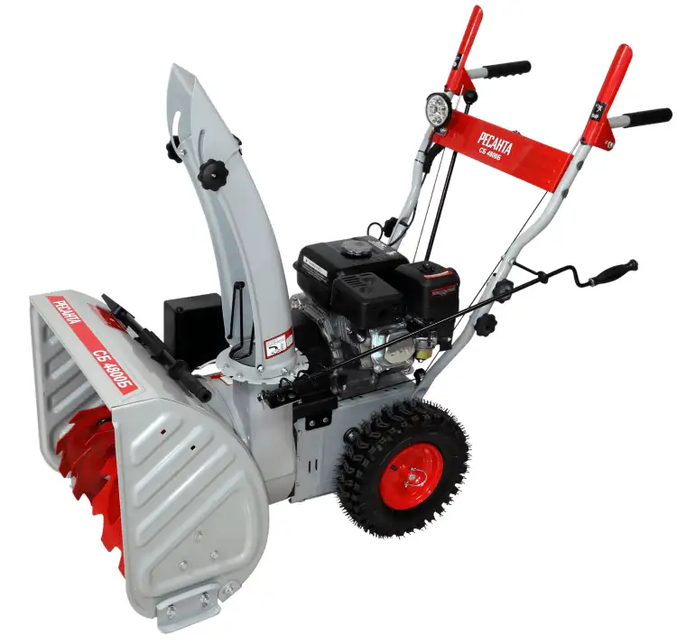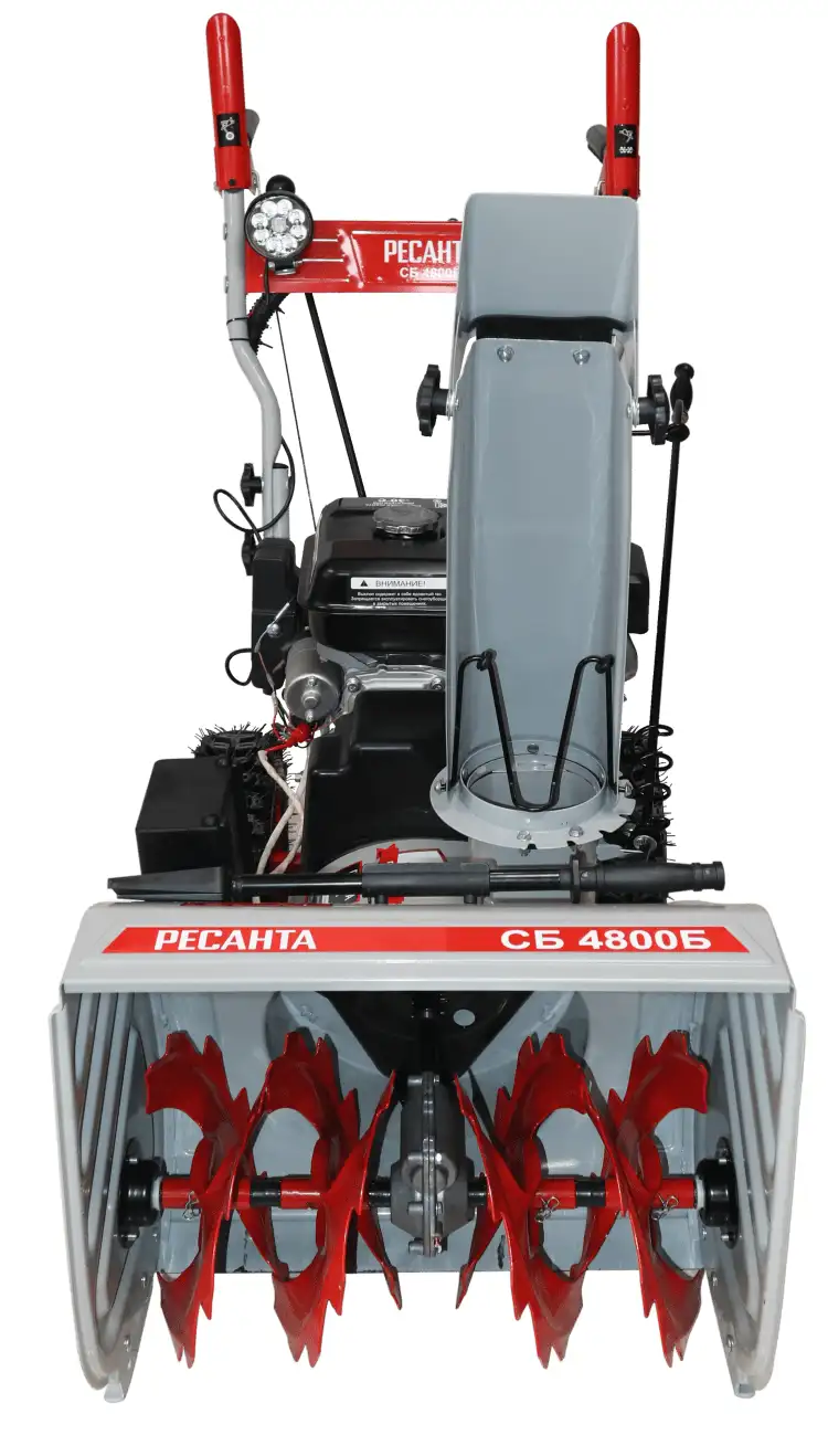 Снегоуборщик Ресанта СБ 4800Б предназначен для расчистки от выпавшего снега территории, например, небольшие дорожки или территорию возле загородного дома. Самоходный агрегат оборудован четырехтактным двигателем мощностью 7.0 л.с. Ширина обработки за один проход составляет 56 сантиметров. Мощность, л.с. 7 Скорости 5 вперед / 2 назад Электростартер от АКБ 12В Наличие фары Да Подогрев Нет Объем топливного бака, л 3.6 Глубина обработки, мм 540 Ширина обработки, мм 560 Самоход Да Двигатель 4-х тактный, одноцилиндровый Тип стартера Ручной и электрический Тип двигателя Бензиновый Гарантия, мес. 12 Страна бренда Латвия Страна производства Китай Бренд Ресанта Рабочая система снегоуборщика Ресанта представляет собой снегозаборный желоб со шнеком, а также вентилятор в форме крыльчатки и желоб для выброса снега. Агрегат приводится в действие четырехтактным поршневым одноцилиндровым бензиновым двигателем внутреннего сгорания с воздушным охлаждением.
