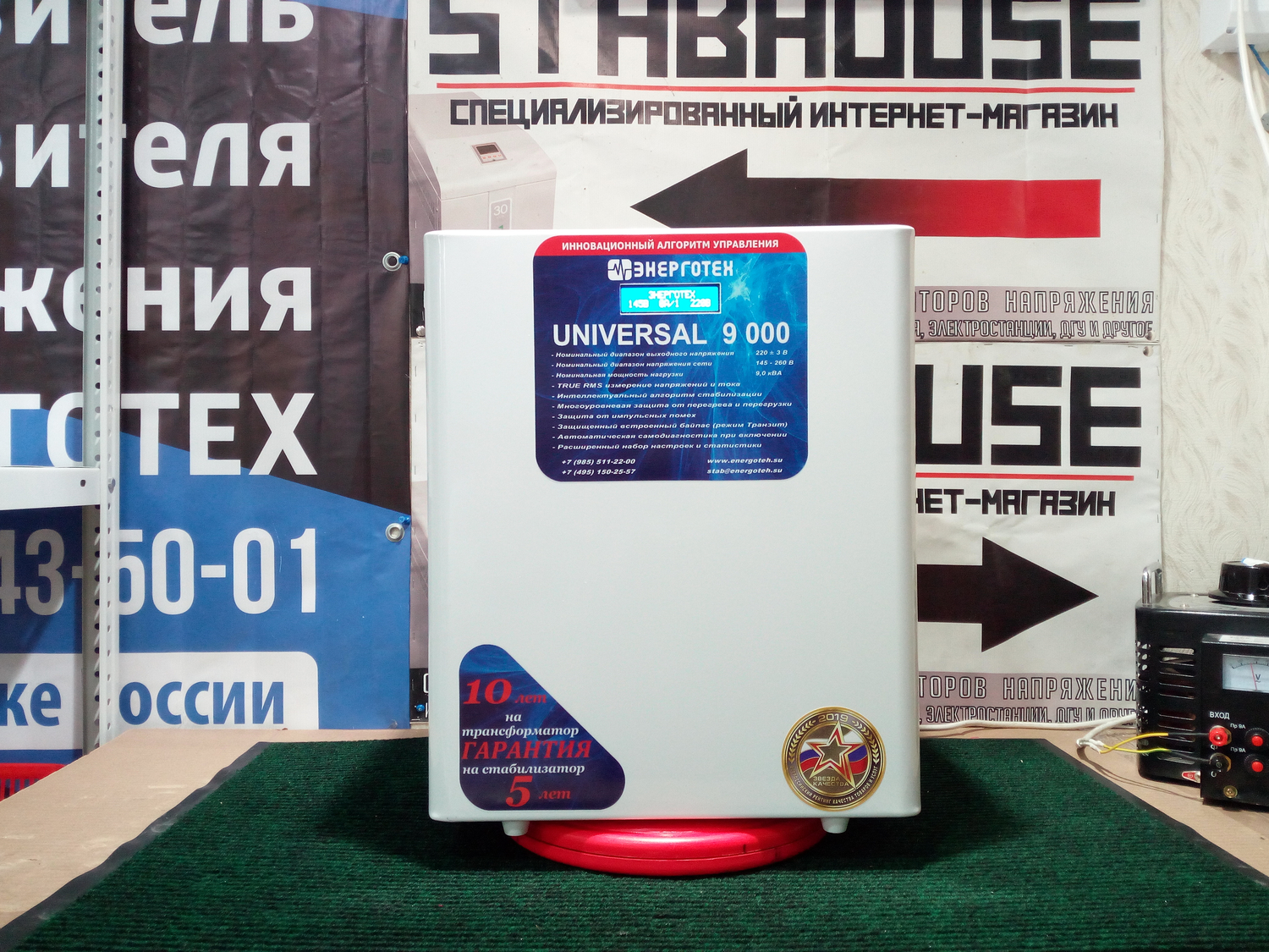 Прибор относится к автоматическим регуляторам ступенчатого типа и рассчитан на круглосуточную эксплуатацию с непрерывным измерением параметров входного тока. Его основным узлом является 36-ступенчатый автотрансформатор с тиристорным переключением - электронная модель, бесшумна и удобна в использовании. Номинальное напряжение сети, В: 220 Количество ступеней регулирования: 36 Рабочий диапазон входного напряжения, В: 147÷258 Рабочий диапазон выходного напряжения, В: 217÷223 Предельный диапазон входного напряжения, В: 60÷270 Точность стабилизации выходного напряжения , ±%: 220 В ±1,5% Режим работы: постоянный Номинальная мощность нагрузки, ВА: 9000 Максимальный входной ток, А: 44 Частота питающей сети, Гц: 50 Ток холостого хода, А: 0,4 Время реакции на изменение напряжения, мс: 20 Время реакции на аварийное изменение напряжения, мс: 20 Температура срабатывания тепловой защиты, °С: 105 Диапазон рабочей температуры, °С: от - 40 до +40 Масса, кг: 22 Габариты, Г х Ш х В, мм: 180х385х405 Параметры входного и выходного напряжения отображаются на индикаторе, расположенном на лицевой панели стабилизатора напряжения Universal. Для отключения питания используется автомат токовой защиты, обеспечивающий дополнительный контроль за характеристиками тока на входе. У модели предусмотрено два рабочих режима: «Стабилизация» и «Транзит». При стабилизации прибор производит регулировку входных параметров и поддержание необходимого напряжения. В аварийном режиме «Транзит» происходит отключение автотрансформатора, и потребитель получает ток на входе стабилизатора, однако при превышении порога допустимого напряжения подача электроэнергии прерывается. Стабилизаторы обеспечивают: автоматическое отключение от сети при повышении входного фазного напряжения свыше 280 В (225 В или 310 В для моделей ориентированных на пониженное LV и повышенное HV напряжение соответственно) неискаженную форму синусоидального выходного напряжения; работу во всем диапазоне нагрузок от холостого хода до максимальной нагрузки; стабилизацию выходного фазного напряжения на уровне 220 В ±1,5% при изменении входного фазного напряжения от 145 до 260 В (100÷210 В или 175÷290 В для моделей ориентированных на пониженное LV и повышенное HV напряжение соответственно), частотой 50 Гц; отображение входного и выходного напряжений; отображение кода ошибки в случае защитного отключения; защиту от короткого замыкания; защиту от превышения тока, с возможностью безопасной перегрузки на ограниченное время для пусковых токов электродвигателей; защиту от импульсных перегрузок по току в течение 10 мс с отключением на 1 минуту; режим «транзит»; защиту потребителей от перенапряжения в режиме «транзит» при повышении входного фазного напряжения свыше 265 В. выключение стабилизатора при перегреве силового трансформатора; отключение силовых ключей при перегреве в случае перегрузки; защиту от некорректного подключения стабилизатора; дополнительные возможности в «меню пользователя»: отображение нагрузки на выходе стабилизатора, регулировка пользователем защит на пониженное и повышенное напряжение, смещение точки стабилизации. Преимущества: сверхбыстрое реагирование на перепады напряжения; 36 ступеней стабилизации; оптимальное соотношение цены и надежности; диапазон стабилизации входного напряжения от 145 до 260 В; отклонение от заданных па