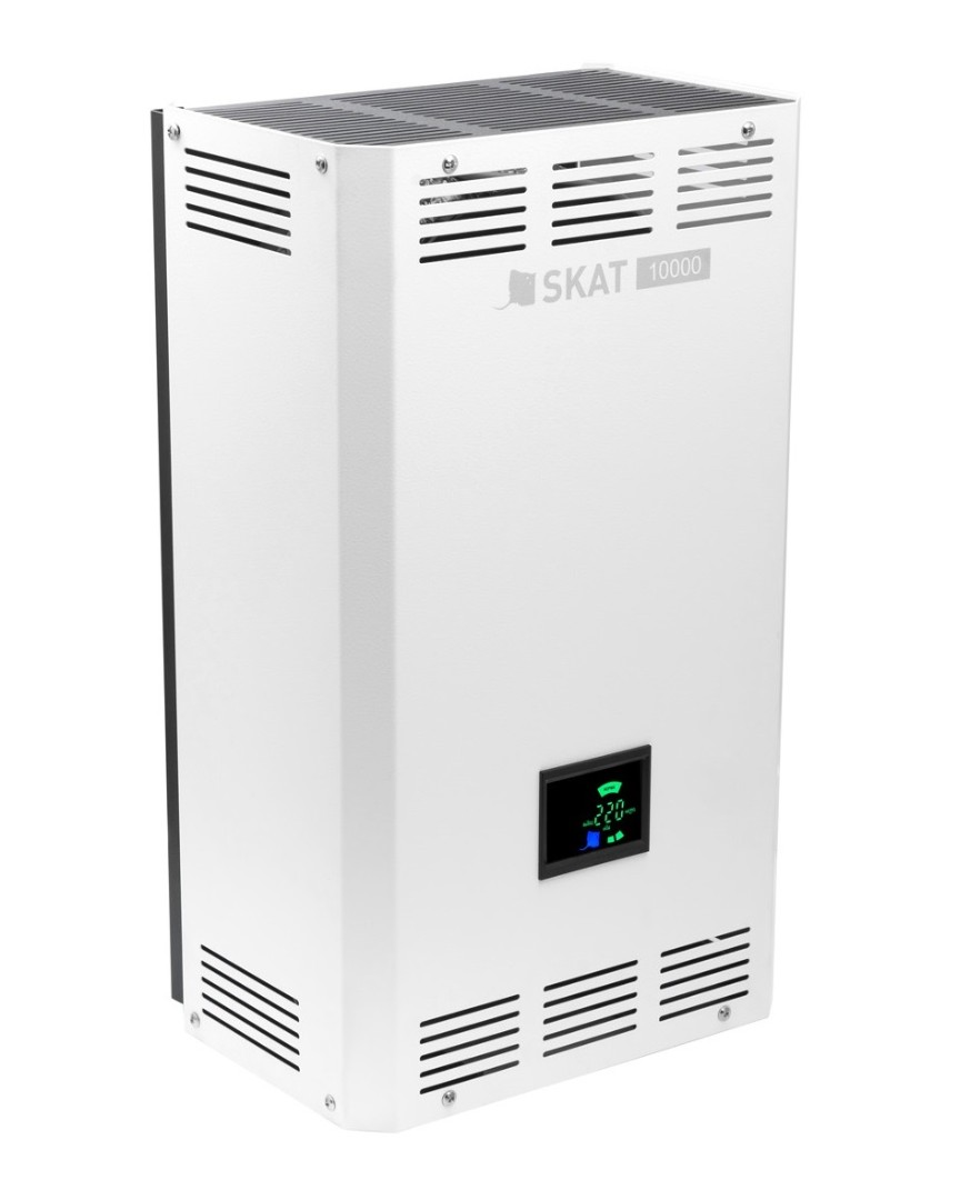 Стабилизаторы SKAT ST LED надёжное решение российских инженеров для защиты сети от перепадов, скачков напряжения и продления срока службы электроприборов. Газовые котлы, сплит-системы, стиральные машины, холодильники это далеко не полный перечень техники, чувствительной к перепадам и скачкам напряжения. Без надёжного стабилизатора они зачастую не выдают заявленный функционал и выходят из строя раньше срока Номинальная мощность нагрузки, Вт, не более: 20000 Максимальный входной ток: 91 Максимальная, пиковая мощность нагрузки, ВА, не более (не более 7 минут): 30000 Мощность, потребляемая от сети без нагрузки, ВА, не более: 50 Максимальное сечение провода, зажимаемого в клеммах колодки, мм2: 10 Габаритные размеры ШхВхГ, мм, (без упаковки), не более: 315x545x225 Габаритные размеры ШхВхГ, мм, не более (в упаковке): 425x665x307 Macca, HETTO (БРУТТО), кг, не более: 30 (45) Напряжение питающей сети 220 В, частотой 50±1 Гц, В: 220 Точность стабилизации, %: 7 Количество ступеней стабилизации, шт.: 5 Рабочий диапазон входного напряжения, В: 146...264 Расширенный диапазон входного напряжения, В: 80...285 Макс. допустимое разрешение входного напряжения, В: 420 Cp. время переключения, мс: 10 Степень защиты оболочкой по 14254-2015: ІР20 Содержание драг. металлов и камней: Нет ОСОБЕННОСТИ: Симисторный стабилизатор с автоматическим выбором диапазона посредством силового реле. В диапазоне входного напряжения 145 - 275 В стабилизатор выдает выходное напряжение в пределах ГОСТ; Предельный диапазон входного напряжения: 80 - 285 В; Интеллектуальное охлаждение ультратихий вентилятор подключается только при значительной нагрузке на стабилизатор. В остальное время стабилизатор работает практически бесшумно; Работает при «обрыве нуля» система управления сохраняет работоспособность и переходит в режим защиты оборудования (предельное напряжение 420 В); Экономичный в режиме холостого хода потребляют до 2 раз меньше электроэнергии, чем инверторные аналоги; Не создает радиопомех безопасен для чувствительного электронного оборудования (приборы, в состав которых входят микропроцессоры, а также аудио- и видеоустройства); Технология ZERO-CROSS переключение ступеней стабилизации происходит в точке перехода синусоиды напряжения через ноль. Нет характерной помехи на выходе, что существенно продлевает срок службы подключённых приборов в сеть; Защита от перегрева 2 температурных датчика; Двойная защита от перегрузки и короткого замыкания независимое реле отключения, датчик тока; Запас надёжности силовой части 400% 4-х кратный запас рабочего тока симисторов позволяет работать стабилизатору без повышенного износа даже при максимальной нагрузке; Система самодиагностики контролирует работоспособность устройства, отображает причину аварийного отключения нагрузки; Высокое качество сборки, 100% выходной контроль качества; Возможность трёхфазного подключения 3 однофазных стабилизаторов по схеме «звезда»; Универсальный корпус для настенного и напольного размещения; Наличие автоматического выключателя; Встроенный байпас. Позволяет временно подключить приборы напрямую к электросети в обход стабилизатора напряжения. Используется во время сервисного обслуживания стабилизатора; Производится в России.