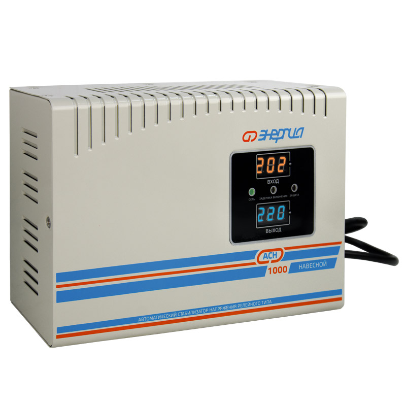 Стабилизатор Энергии АСН навесной это улучшенный вариант стабилизаторов Энергия АСН. Благодаря плоскому корпусу и перекомпоновке внутренних узлов, стабилизатор можно повесить на стену. Стабилизатор Энергия АСН навесной это современное бюджетное оборудование, компактность и широкий модельный ряд. Блок самотестирования и интеллектуальная программируемая защита повышают надёжность и продлевают срок службы стабилизаторов этой серии Принцип стабилизации: Релейный Режим работы: Непрерывный Колличество розеток: 1 (220 В) Режим "БАЙПАС": Нет Задержка включения: 180 секунд / 6 секунд Рабочий диапазон входных напряжений (В): 140-260 Рабочий диапазон выходных напряжений (В): 202238 Номинальное выходное напряжение (В): 220 Отклонение выходных напряжений: ±8% Время реакции на изменение напряжения (мс): 10 Защита от повышенного напряжения, откл. при: 280В Защита от пониженного напряжения, откл. при: 120В Защита от перегрева трансформатора, откл. при: 120 °С Защита от перегрузки по току: Автоматический выключатель Температура эксплуатации (°С): -20...+40 Температура хранения (°С): -40...+45 Относительная влажность (%): 95 КПД при полной нагрузке (%): 97 Число фаз: Одна Максимальная мощность (ВА): 1000 Индикация параметров работы: LED-дисплей (многофункциональный) Подключение к сети: Cетевой кабель с вилкой Максимальный входной ток (А): 6,2 Номинальная частота переменного тока (Гц): 50/60 Охлаждение: Конвекционное Вес нетто (кг): 2,8 Габаритные размеры (мм): 260x174x93 Вес брутто (кг): 3 Преимущества Диапазон регулировки: по точности: 140260 В, по защите: 120280 В. Высокая скорость регулировки. Интеллектуальная защита от перегрузки. Возможность установки в неотапливаемых помещениях. Компактность и небольшой вес (до 16 кг) Повышенная морозоустойчивость: до 20 °С. Низкий уровень шума. Особенности режим «байпас» возможность питания потребителей в обход стабилизатора у моделей 8000, 10000 цифровой дисплей для отображения параметров работы автоматический предохранитель или выключатель от короткого замыкания и перегрузки принудительное охлаждение позволяет реализовать дополнительную защиту от перегрева у моделей 3000, 5000, 8000, 10000 наличие регулируемой задержки включения для обеспечения безопасной работы оборудования световая индикация режимов работы, контроллер на основе микропроцессора шунтирующие конденсаторы обеспечивают минимизацию искрения контактов Виды защиты двухступенчатая защита от перегрузки двухступенчатая защита от коротких замыканий тепловая защита защита от повышенного напряжения защита от пониженного напряжения защита от перегрузки на пониженном напряжении