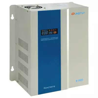 Стабилизатор Энергия Константа 8000 - это устройство, которое предназначено для обеспечения стабильного и качественного электропитания различного электрооборудования в условиях нестабильной работы. Подходит для использования в домашних условиях, а также в офисах, магазинах, медицинских учреждениях и других местах. Тип напряжения: Однофазный Принцип стабилизации: Электромеханический Режим работы: Непрерывный Способ установки: Напольный / Настенный Режим "БАЙПАС": Есть Задержка включения: 180 секунд / 6 секунд Рабочий диапазон выходных напряжений (В): 223237 Номинальное выходное напряжение (В): 230 Отклонение выходных напряжений: ±3% Время реакции на изменение напряжения (мс): 50 Допустимая кратковременная перегрузка не более (%): 110 Защита от повышенного напряжения, откл. при: 290В Защита от пониженного напряжения, откл. при: 114В Защита от перегрева трансформатора, откл. при: 120 °С Защита от перегрузки по току: Автоматический выключатель Температура эксплуатации (°С): -5...+40 Температура хранения (°С): -40...+45 КПД при полной нагрузке (%): 98 Относительная влажность: Не более 90% Максимальная мощность (ВА): 8000 Индикация параметров работы: LED-дисплей (многофункциональный) Подключение к сети: Клеммная колодка Максимальный входной ток (А): 49,5 Степень защиты (IP): IP20 Входное напряжение (В): 150-260 Номинальная частота переменного тока (Гц): 50/60 Вес нетто (кг): 22,92 Габаритные размеры нетто (мм): 425х200х390 Вес брутто (кг): 24,98 Особенности Широкий диапазон входного напряжения 150-260 В защищает оборудование от скачков и перепадов напряжения. Выходное напряжение 230 В ± 3% соответствует современным стандартам. Интеллектуальная защита от перегрузки и перегрева предотвращает повреждение стабилизатора и подключенного оборудования. Цифровой дисплей отображает текущие параметры работы. Металлический корпус обеспечивает пожарную безопасность и защиту от механических повреждений. Воздушное охлаждение обеспечивает эффективный теплоотвод.