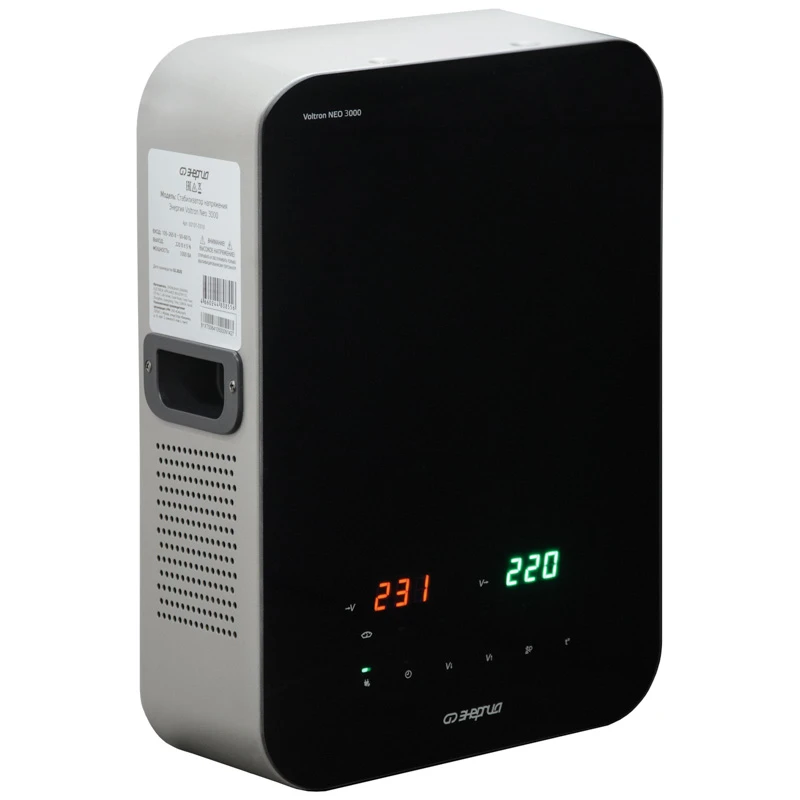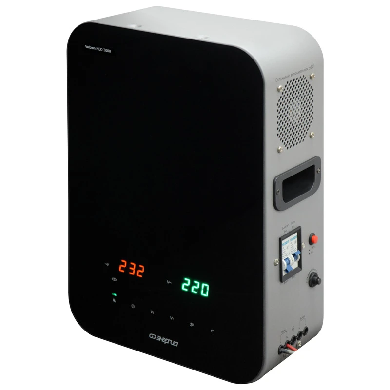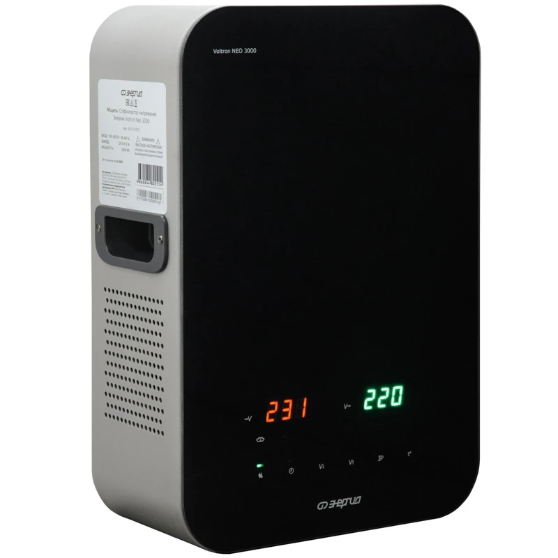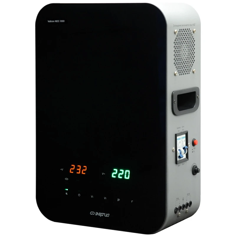 Стабилизаторы Voltron Neo 3000 обладают мощностью 3000 ВА / 2400 Вт , с диапазоном входного напряжения 190 - 260 В. Они оснащены цифровым дисплеем, LED-индикацией и защитой по классу IP20, работают с термоконтакторами TN на 30 А. Габариты моделей составляют 270 х 135 х 400 мм, вес 10,3 кг Стабилизаторы используют релейную (ступенчатую) стабилизацию с термоконтакторами, переключающими обмотки трансформатора для поддержания выходного напряжения 220 В. Микропроцессорный контроль обеспечивает точность стабилизации 209 231 В при входе 190 260 В, с защитой от перегрузки и короткого замыкания. Индикация ON/OFF и задержка 6 180 с предотвращают повреждения при восстановлении сети. Артикул: Е0101-0310 Максимальная мощность нагрузки, ВА / Вт: 3000 / 2400 Диапазон входного напряжения, В: 105-265 Точность стабилизации, %: 5 Диапазон выходного напряжения, В: 209 - 231 Напряжение отключения при повышении входного напряжения, В: 280 Напряжение отключения при понижении входного напряжения, В: 95 Температура отключения при перегреве трансформатора, °С: 120 Время переключения, мс: 10 Способ охлаждения: Воздушное конвекционное и принудительное Входная цепь: Клеммная колодка Выходная цепь: Клеммная колодка Устройства предназначены для бытового и коммерческого использования, включая защиту бытовой техники, освещения и оборудования мощностью до 4000 Вт. Подходят для сетей с номинальным напряжением 220 В ± 5 %, обеспечивая стабильный выход 220 В. Рекомендуются для регионов с нестабильным электроснабжением. Эксплуатация возможна при температуре от -30 до +40 °C, с влажностью до 95 % без конденсации. Диапазон напряжения сети 190 - 260 В, частота 50 / 60 Гц, высота установки до 1000 м над уровнем моря. Соответствуют стандартам ISO 780 и классу защиты III. Преимущества Широкий диапазон регулировки: по точности: 105 - 265 В;по защите: 95 - 280 В; Высокая точность стабилизации ± 5 %; Стабильная работа при резких скачках напряжения; Защита от образования дуги; Цветной, информативный LЕD дисплей; Повышенная морозоустойчивость: до -30 °C; Возможность установки в неотапливаемых помещениях; Возможность работы с инверторными сварочными аппаратами; Универсальный способ установки (навесной или напольный); Низкий уровень шума. Виды защиты: двухступенчатая защита от перегрузки; двухступенчатая защита от коротких замыканий; тепловая защита; защита от повышенного напряжения; защита от пониженного напряжения; защита от перегрузки на пониженном напряжении.
