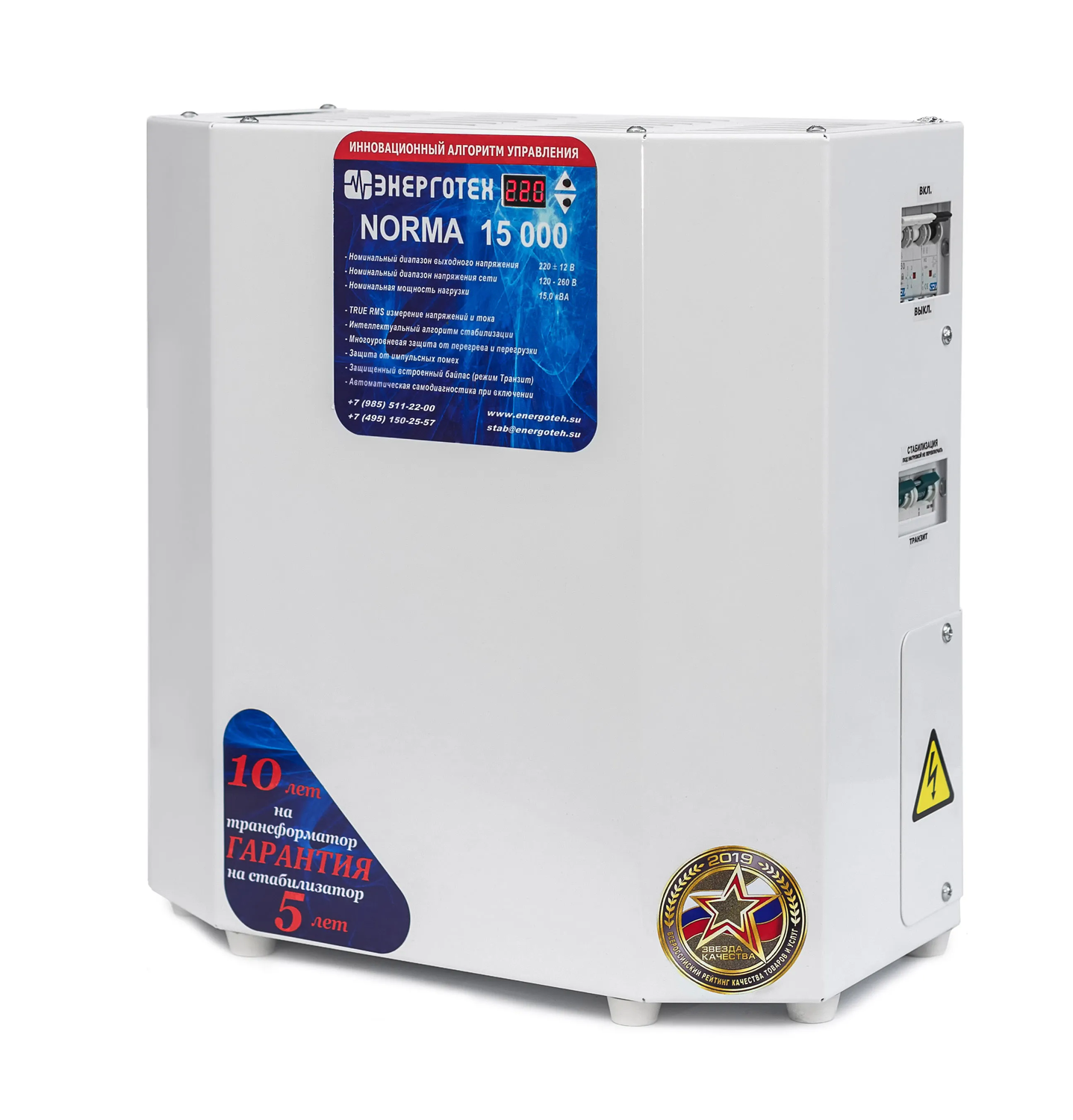 Устройства данной серии поддерживают выходные значения тока в диапазоне 208232 В, создают оптимальные условия работы аппаратуры со стандартными номинальными требованиями к качеству характеристик тока. Преимущества моделей этой линейки: быстрое реагирование на любые перепады напряжения; эффективная защита от перегрева; непрерывный автоматический контроль характеристик входного тока; наглядное отображение текущих параметров; двойная защита от КЗ (короткого замыкания); прочность и надежность конструкции; высокое качество сборки. Несмотря на наличие воздушной системы принудительного охлаждения рабочих узлов, аппарат имеет низкий уровень шума. Небольшой металлический корпус не подвержен коррозии, так как он имеет порошковое покрытие. Модель рассчитана на продолжительную непрерывную эксплуатацию в довольно широком температурном диапазоне и подходит для монтажа в неотапливаемых помещениях. В комплект входит кронштейн для настенной установки. Аппарат разработан на основе автотрансформатора (девятиступенчатого) с тиристорным управлением. Для обеспечения полной безопасности электроснабжения прибор оснащен независимым автоматом токовой защиты, размыкающим цепь при коротком замыкании (КЗ) даже в случае повреждения электронной платы. Все текущие параметры выведены на индикатор, размещенный на передней панели. Информация о параметрах входного напряжения обрабатывается платой управления в непрерывном режиме, благодаря чему обеспечивается максимально быстрая реакция на аварийные ситуации. Номинальное напряжение сети, В: 220 Количество ступеней регулирования: 9 Рабочий диапазон входного напряжения, В: 121÷259 Рабочий диапазон выходного напряжения, В: 205÷235 Предельный диапазон входного напряжения, В: 60÷265 Точность стабилизации выходного напряжения , ±%: 220 В ±7% Режим работы: постоянный Номинальная мощность нагрузки, ВА: 15000 Максимальный входной ток, А: 72 Частота питающей сети, Гц: 50 Ток холостого хода, А: 0,75 Время реакции на изменение напряжения, мс: 20 Время реакции на аварийное изменение напряжения, мс: 20 Температура срабатывания тепловой защиты, °С: 105 Диапазон рабочей температуры, °С: от - 40 до +40 Масса, кг: 34 Габариты, мм: 210×420×395 Стабилизаторы обеспечивают автоматическое отключение от сети при повышении входного фазного напряжения свыше 267 В (310 В для моделей ориентированных на повышенное HV напряжение) неискаженную форму синусоидального выходного напряжения; работу во всем диапазоне нагрузок от холостого хода до максимальной нагрузки; стабилизацию выходного фазного напряжения на уровне 220 В ±5,7% при изменении входного фазного напряжения от 120 до 260 В (150÷300 В для моделей ориентированных на повышенное HV напряжение), частотой 50 Гц; отображение диапазона входного напряжения; индикацию в случае защитного отключения; защиту от короткого замыкания; защиту от превышения тока, с возможностью безопасной перегрузки на ограниченное время для пусковых токов электродвигателей; режим «транзит»; защиту потребителей от перенапряжения в режиме «транзит» при повышении входного фазного напряжения свыше 265 В. выключение стабилизатора при перегреве силового трансформатора; отключение силовых ключей при перегреве в случае перегрузки; защиту от некорректного подключения стабилизатора; Стабилизатор не имеет гальванической развязки между вх