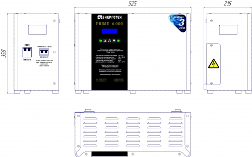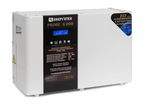 Устройство предназначено для непрерывного использования в общественных местах, в жилых, коммерческих и производственных зонах. При использовании обеспечивается: полное сохранение заявленных технических характеристик во всём рабочем диапазоне входных напряжений; автоматическое отключение сети в случае превышения значения входного напряжения 265 Вольт; защиту от КЗ и длительной перегрузки на выходе; отображение значений выходного и входного напряжения, входного тока и текущей ступени стабилизации; индикацию кода ошибки в ситуации отключения; исключение риска повреждения импульсных источников питания при кратковременном исчезновении сети путем их отключения; тепловую защиту автотрансформатора. Стабилизатор не имеет гальванической развязки между входом и выходом и обеспечивает автоматическое отключение от сети при превышении верхнего значения входного напряжения предельного диапазона входных напряжений, при снижении напряжения до рабочего уровня происходит автоматическое включение стабилизатора. Номинальное напряжение сети, В: 220 Тип стабилизации: симисторный Номинальная мощность нагрузки, ВА: 6000 Рабочий диапазон входного напряжения, В: 140÷290 Рабочий диапазон выходного напряжения, В: 214÷226 Предельный диапазон входного напряжения, В: 120÷310 Точность стабилизации выходного напряжения , ±%: ±3 Количество ступеней регулирования: 20 Номинальный входной ток, А: 27 Максимальный входной ток, А: 42 Перегрузочная способность: при 120% - 10 сек., при 200% - 0,5 сек. Режим работы: постоянный Количество фаз: однофазный Частота питающей сети, Гц: 50 Время реакции на изменение напряжения, мс: 20 Ток холостого хода, А: 0,4 Диапазон рабочей температуры, °С: от - 25 до +40 Габариты, Г х Ш х В, мм: 215×525×358 Масса, кг: 24 Стабилизатор обеспечивает защиту от короткого замыкания и длительной перегрузки на выходе, а также режим «транзит» в аварийной ситуации или в случае отсутствия необходимости в стабилизации напряжения. Продукция сертифицирована. Стабилизаторы обеспечивают: автоматическое отключение от сети при повышении входного фазного напряжения свыше 340 В неискаженную форму синусоидального выходного напряжения; работу во всем диапазоне нагрузок от холостого хода до максимальной нагрузки; стабилизацию выходного фазного напряжения на уровне 220 В ±3% при изменении входного фазного напряжения от 140 до 290 В, частотой 50 Гц; непрерывное измерение действующих значений входного тока, входного и выходного напряжений в каждом периоде сетевой частоты и реакцию на их изменение не более 20 мс; отображение на индикаторе входного напряжения и тока, ступени стабилизации и выходного напряжения; возможность подстройки пользователем номинального диапазона выходного (стабилизированного) напряжения; отображение кода ошибки в случае защитного отключения; защиту от короткого замыкания; защиту от превышения тока, с возможностью безопасной перегрузки на ограниченное время для пусковых токов электродвигателей; защиту от импульсных перегрузок по току в течение 20 мс с отключением на 30 секунд; режим «транзит»; возможность работы в режиме «транзит» в аварийной ситуации; защиту потребителей от перенапряжения в режиме «транзит» при повышении входного фазного напряжения свыше 265 В; выключение стабилизатора при перегреве силового трансформатора; отключение силовых ключей при 