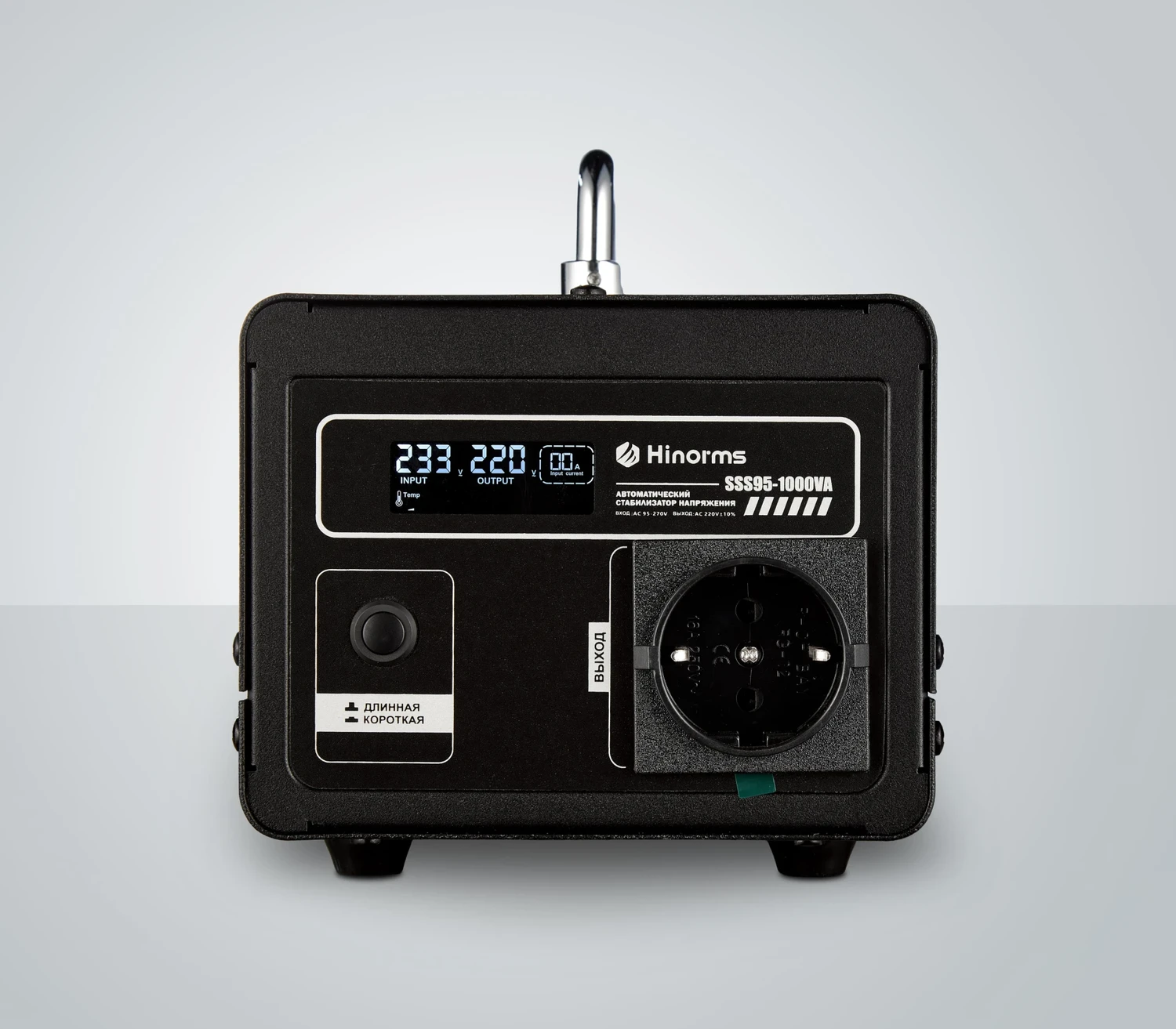 Стабилизатор напряжения Hinorms серии SSS95 - 1000 ВА предназначен для защиты маломощных бытовых приборов и электроники с общей мощностью до 1000 ВА, например: телевизор, компьютер, газовый котел с циркуляционными насосами и т.д. Напольная конструкция, компактные размеры, информативный дисплей, стильный корпус в черном цвете, три стандартные евро на розетки на 220 Вольт и длинный сетевой шнур, по праву выгодно выделяют данную модель среди конкурентов. Количество фаз:: Однофазный Принцип работы: Релейный Мощность: 1000 ВА Рабочий диапазон: 90 - 270 Вольт Выходное напряжение: 220 ± 10 % Вольт рабочая частота: 50-60 Гц Время срабатывания: 20 мс Влажность окружающей среды: Не более 85 % Тип размещения: Напольный Габаритные размеры: 260х100х150 мм Вес товара: 3 кг Устройство работает в диапазоне входного напряжения от 90 до 270 Вольт, а на выходе даёт 220 Вольт с разбросом в 10%, что приемлемо для подавляющего количества потребителей. Оснащен задержкой по включению 6 и 200 секунд на выбор. Имеет несколько степеней защиты, в том числе защиту от повышенной нагрузки, защиту от повышенного и пониженного напряжения, защиту от короткого замыкания, а также термозащиту трансформатора.