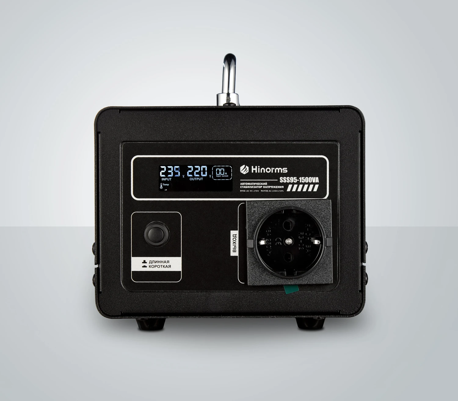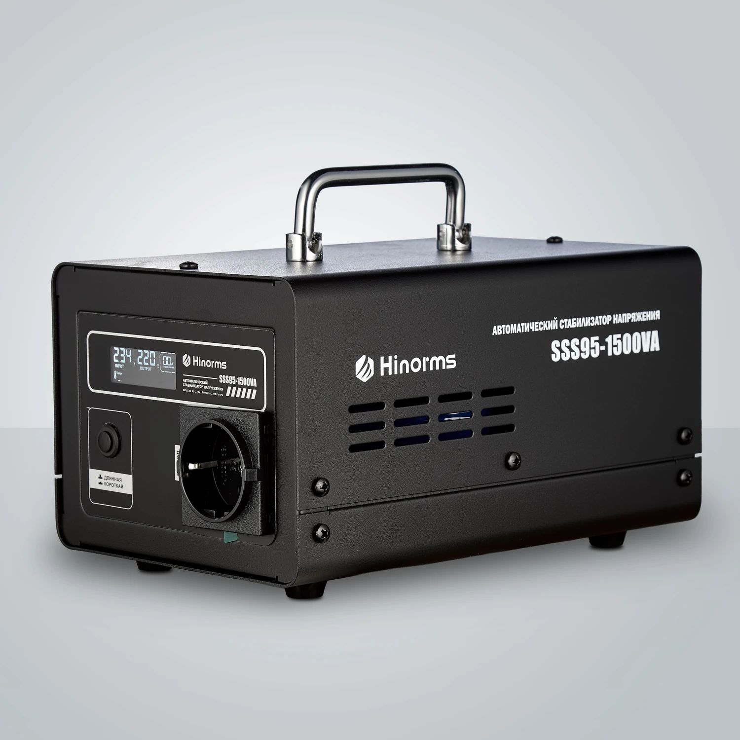 Стабилизатор напряжения Hinorms серии SSS95 - 1500 ВА предназначен для защиты бытового оборудования и электроники с общей мощностью до 1500 ВА в диапазоне входного напряжения от 90 до 270 Вольт, при это на выходе подаёт 220 Вольт с разбросом в 10%. Данное устройство - это отличное решение если нужно обеспечить безопасность одного-трех не очень мощных потребителей электроэнергии, таких как: телевизор, компьютер, активная антенна или газовый котел с циркуляционными насосами для теплого пола. Стабилизатор выгодно выделяется среди конкурентов, благодаря компактным размерам, информативному дисплею, напольной конструкции, стильному корпусу в черном цвете и трем розеткам на 220 Вольт с длинным сетевым шнуром. Количество фаз:: Однофазный Принцип работы: Релейный Мощность: 2000 ВА Рабочий диапазон: 90 - 270 Вольт Выходное напряжение: 220 ± 10 % Вольт рабочая частота: 50-60 Гц Время срабатывания: 20 мс Влажность окружающей среды: Не более 85 % Тип размещения: Напольный Габаритные размеры: 30х14х18 см Вес товара: 5 кг Оснащен задержкой по включению 6 и 200 секунд на выбор. Имеет несколько степеней защиты, в том числе защиту от повышенной нагрузки, защиту от повышенного и пониженного напряжения, защиту от короткого замыкания, а также термозащиту трансформатора.