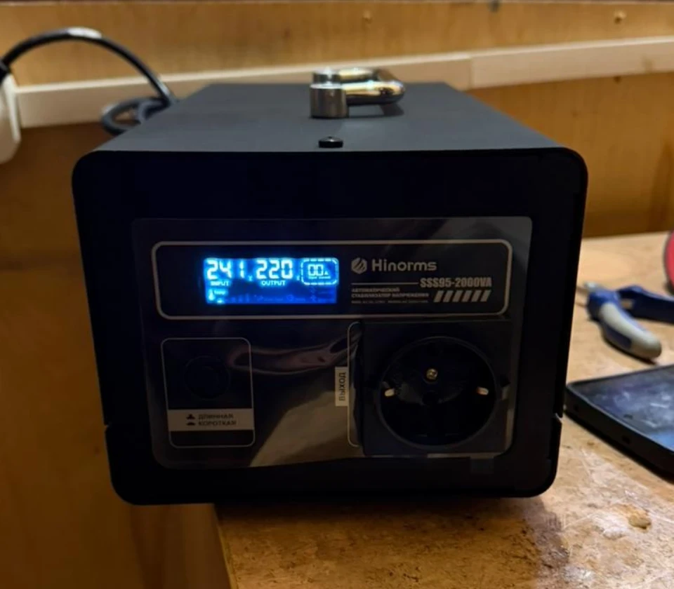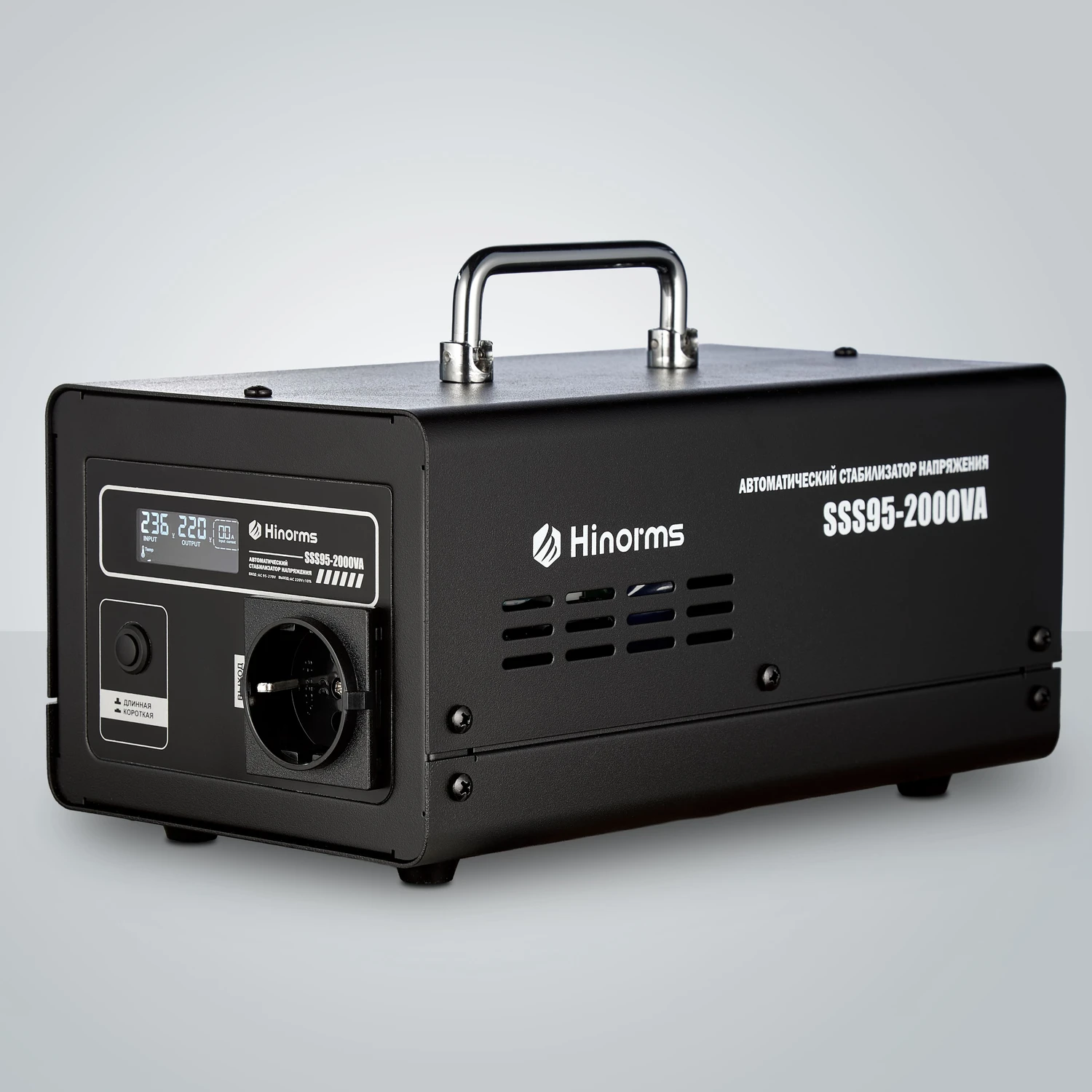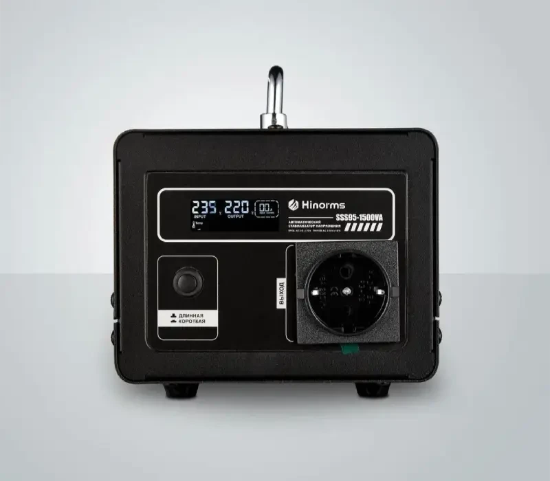 Стабилизатор напряжения Hinorms серии SSS95 общей мощностью до 2000 ВА отличное решение если нужно обеспечить безопасность одного-трех не очень мощных потребителей электроэнергии. Например, его можно установить на группу розеток, которые питают телевизор, компьютер и активную антенну или газовый котел, в довесок с циркуляционными насосами для теплого пола. Компактные размеры, информативный дисплей, напольная конструкция, черный и стильный корпус, три стандартные евро на розетки на 220 Вольт и длинный сетевой шнур, по праву выгодно выделяют данную модель среди конкурентов. Устройство работает в диапазоне входного напряжения от 90 до 270 Вольт, а на выходе даёт 220 Вольт с разбросом в 10%, что приемлемо для подавляющего количества потребителей. Оснащен задержкой по включению 6 и 200 секунд на выбор. Количество фаз:: Однофазный Принцип работы: Релейный Мощность: 2000 ВА Рабочий диапазон: 90 - 270 Вольт Выходное напряжение: 220 ± 10 % Вольт рабочая частота: 50-60 Гц Время срабатывания: 20 мс Влажность окружающей среды: Не более 85 % Тип размещения: Напольный Габаритные размеры: 30х14х18 см Вес товара: 5 кг Имеет несколько степеней защиты, в том числе защиту от повышенной нагрузки, защиту от повышенного и пониженного напряжения, защиту от короткого замыкания, а также термозащиту трансформатора.