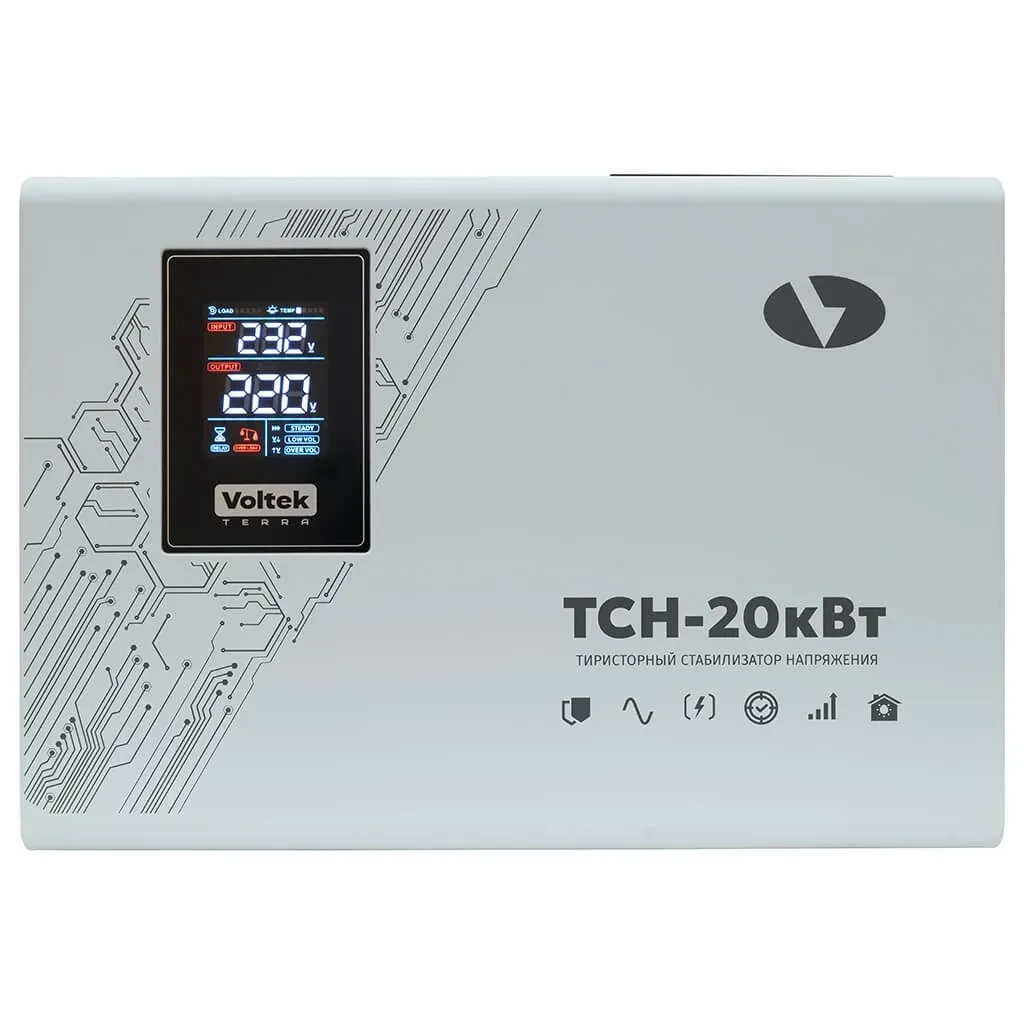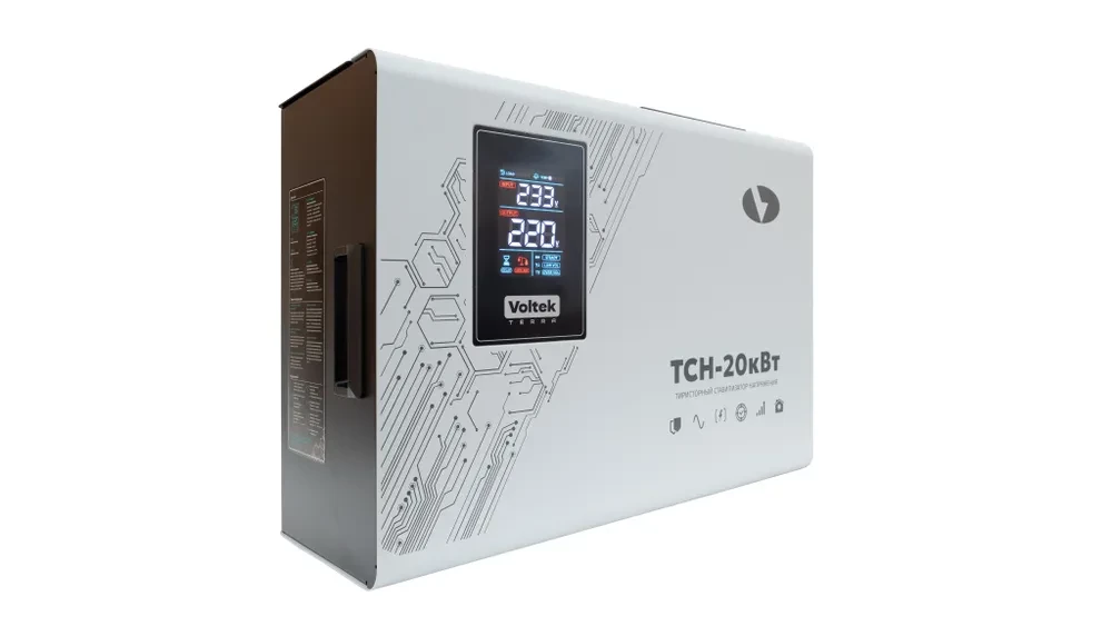 Стабилизатор напряжения однофазный VOLTEK ТСН 20000 (20000ВА) предназначен для поддержания стабильного напряжения в однофазных электросетях. Стабилизатор оснащен комплексом систем, обеспечивающим надежную защиту как потребителей, так и самого стабилизатора от любых нештатных ситуаций, и рассчитан на непрерывную круглосуточную работу в условиях больших по значению и длительности отклонений напряжения от номинального значения. Тип стабилизатора тиристорный Тип сети однофазная Полная мощность, ВА 20000 Мощность, кВА 20 Мощность, кВт ~16 Максимальный входной ток, А 100 Способ установки напольный, настенный Подключение клеммная колодка Режим "БАЙПАС" есть Отклонение выходных напряжений, % ±5 Режим работы непрерывный Тип охлаждения воздушное (конвекционное и принудительное) Дисплей LED-дисплей Индикация входное напряжение / выходное напряжение / сеть / защита / задержка Задержка включения, сек 200, 5 Предельный диапазон входных напряжений, В 80-280 Рабочий диапазон входных напряжений, В 95-250 Номинальное выходное напряжение, В 220 Частота, Гц 50-60 Время реакции на изменение напряжения, мс 30 Защита от повышенного напряжения, откл. при, В 247 Защита от пониженного напряжения, откл. при, В 170 Защита от перегрева трансформатора, откл. при, °С 120 Защита от перегрузки по току Автоматический выключатель (электронная) Степень защиты от внешних воздействий по ГОСТ 14254-96 IP20 Относительная влажность, % 0 - 80 (без конденсата) Температура эксплуатации, °С -20...+40 КПД при полной нагрузке, % 95 Температура хранения, °C -30...+80 Вес, кг 37.7 Размеры, мм 520х386х203 Особенности Надежность и молниеносная скорость реакции электронных ключей на отклонение напряжения; Отсутствие движущихся частей и ненадежных реле; Наличие чистой синусоиды; Низкое собственное потребление и высокая энергоотдача; Одинаково хорошо работает с резистивной, индукционной, емкостной и смешанной нагрузкой. Преимущества Стабилизирует напряжение при скачках до 280В и проседаниях до 80В; Благодаря погрешности выходного напряжения 5% подходит даже для самых требовательных и чувствительных приборов; Высокая перегрузочная способность до 200% для устройств с высокими пусковыми токами (насосы, компрессоры, станки); Меньше выделения тепла и потери мощности. Виды защиты Защита от повышенного напряжения; Защита от пониженного напряжения; Защита от электрических помех; Защита от высоковольтных скачков; Защита от провалов входного напряжения; Защита от перегрева. Перегрузочная способность Перегрузка 20% - до 30 минут; Перегрузка 40% - до 12 минут; Перегрузка 60% - до 7 минут; Перегрузка 100% - до 1,5 минут; Перегрузка 200% - менее 1 секунды. Тиристорный стабилизатор Рубин ТСН 12000 (+/-5%) предназначен для бытового и промышленного применения. Подходит для водяного насоса, компрессора, станков.