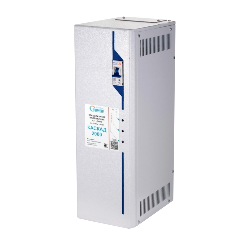 Электронный стабилизатор напряжения однофазный Каскад СН-2000 предназначен для обеспечения качественного электропитания компьютеров, оргтехники, медицинского оборудования, аудио- видеотехники и другой промышленной и бытовой аппаратуры, в сетях с напряжением отличным от номинального, а так же для защиты электронной техники от индустриальных и атмосферных импульсных помех, распространяемых по сети питания. Модель стабилизатора: СН-О-2000 Номинальная мощность, кВА (ток фазы, А): 2,2 (10) Активная мощность, кВт: 2,2 Диапазон входного напряжения при выходном 220±5%, В: - Диапазон входного напряжения при выходном 220±10%, В: 135-300 Диапазон входного напряжения при выходном 220-20%, В: 118 Диапазон входного напряжения при выходном 220±2,5%, В: 145-280 Масса, кг: 15 Габаритные размеры, мм: 130х380х220 Тип стабилизатора: электронный Номинальная мощность, кВА: 2,2 Количество фаз: однофазный Входное напряжение, В: 220 Температура эксплуатации, ˚С: от +40 до -25 Точность коррекции*, %: +/- 2,5 Способ установки: напольный, настенный Допустимая перегрузка, %: 1000 КПД, %: 97 Байпас: нет Способ подключения: клеммные колодки Способ охлаждения: естественный Гарантия, мес: 36 Сопротивление изоляции, не менее, МОм: 2,0 Верхний порог напряжения отключения/включения нагрузки, В: 242/239 Нижний порог напряжения отключения/включения нагрузки, В: 176/198 Сечение проводов для подключения блока, мм2: 1,5 Коэффициент мощности, не менее: 0,99 Степень защиты: IP20 Номинальное входное напряжение, В, Гц: 220, 50 Максимальный ток, А: 10 Стабилизаторы напряжения обеспечивают: коррекцию питающего напряжения в широком диапазоне; защиту электронного оборудования от импульсных перенапряжений; Однофазные стабилизаторы напряжения «КАСКАД» функционально представляют собой «ступенчатые» корректоры напряжения состоящие: электронной измерительно-управляющей части, с использованием микропроцессора; исполнительных ключей (реле, симисторы) автотрансформатора. Для производства схемы управления стабилизаторов напряжения «КАСКАД» используются только высококачественные электронные компоненты и комплектующие ведущих мировых производителей, таких как: PHILIPS, THOMSON-CSF, TOSHIBA, TAKAMISAWA, MICROCHIP, RELPOL, MOTOROLA. Гарантийный срок - 3 года. Климатическое исполнение УХЛ 4.2. Эксплуатация производится в отапливаемых помещениях при температуре окружающей среды от +1 до +35°С и относительной влажности до 98% (при +25°С). Все модели стабилизаторов напряжения имеют В.Ч. фильтры с элементами защиты от мощных импульсных помех. Вышеуказанные элементы защищают нагрузку от высоковольтных выбросов и шумов, вызванных грозовыми разрядами, переходными процессами в сети, сварочным оборудованием, транспортом и т.д. Параметры защиты от импульсных перенапряжений Максимальный импульсный ток, выдерживаемый ограничителем 8 500 А Максимальная рассеиваемая энергия 140 Дж Время срабатывания 8/ 20x10-6 сек. Конструкция стабилизаторов напряжения Однофазные стабилизаторы напряжения моделей «Каскад 2000» и «Каскад 4000», представляют собой блок с кронштейном для настенного крепления. Также могут устанавливаться на полу. Корпусные элементы изготовлены из металла и окрашены износостойким полимерным покрытием. Цвет серый RAL 7035. Подключение к сети и нагрузке производится через клеммные зажимы, расположенные под верхней панелью стабилизатора напряжения. ТЕХНИЧЕСКИЕ ХАРАКТЕРИСТИКИ Модель стаб