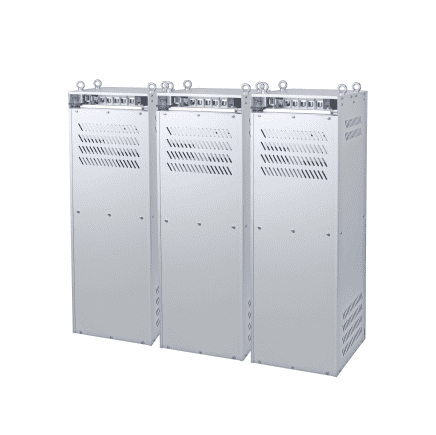Предназначен для обеспечения качественного электропитания компьютеров, оргтехники, медицинского оборудования, аудио- видеотехники и другой промышленной и бытовой аппаратуры, в сетях с напряжением отличным от номинального; Для защиты электронной техники от индустриальных и атмосферных импульсных помех, распространяемых по сети питания (защите класса С по МЭК IEC 1312 1 (1995 02) и IEC 1643 1). Номинальная мощность, кВА (ток фазы, А): 415,8 (630) Активная мощность, кВт: 415,8 Диапазон входного напряжения при выходном 220±1%,В: 193-247 Диапазон входного напряжения при выходном 220±10%,В: 175-269 Диапазон входного напряжения при выходном 220-20%,В: 156 Масса, кг: 840 Габаритные размеры, мм: 990х1200х610 (1250х1205х665 (формируется из 3-х блоков 350х1205х665). Расстояние между блоками должно быть не менее 100 мм. Габариты указаны с учётом расстояния.из 3-х блоков 330х1200х610) Тип стабилизатора: Электромеханический Номинальная мощность, кВА: 415,8 Количество фаз: трехфазный Входное напряжение, В: 380 Температура эксплуатации, ˚С: от +40 до -25 Точность коррекции*, %: +/-1 Способ установки: напольный Допустимая перегрузка, %: 1000 КПД, %: 98 Байпас: есть Способ подключения: клеммные колодки Способ охлаждения: естественный Гарантия, мес: 24 Сопротивление изоляции, не менее, МОм: 2,0 Рекомендуемые товары: Array Характеристика срабатывания токовой защиты (тепловая): тип К Верхний порог напряжения отключения/включения нагрузки, В: 242/239 Нижний порог напряжения отключения/включения нагрузки, В: 176/198 Нижний порог напряжения включения нагрузки при работе в режиме "ПРЯМОЕ ВКЛЮЧЕНИЕ", не менее, В: 185 Защита от короткого замыкания: Iнагр>(4/5)Iмакс (тип В) Сечение проводов для подключения блока, мм2: 2х150,0 Коэффициент мощности, не менее: 1,0 Степень защиты: IP20 Номинальное входное напряжение, В, Гц: 220/380, 50 Максимальный ток, А: 630 СТАБИЛИЗАТОРЫ НАПРЯЖЕНИЯ ОБЕСПЕЧИВАЮТ: плавную регулировку напряжения в широком диапазоне с высокой точностью ± 1%, без разрыва фазы, без выброса помех в сеть и искажения формы питающего напряжения, что позволяет работать как с сильно-индуктивными (электродвигатели), так и с сильно-емкостными нагрузками (оборудование соляриев); в отличие от большинства стабилизаторов напряжения других фирм, обеспечивает корректную работу при питании от дизель-бензогенератора за счет высокой помехоустойчивости измерительных цепей; защиту электронного оборудования от импульсных перенапряжений; индикацию параметров сети; полную паспортную мощность во всем заявленном диапазоне напряжений. СИСТЕМЫ ЗАЩИТЫ НАГРУЗКИ: отключение нагрузки при аварии сети, при отклонении напряжения на выходе стабилизатора за безопасные для нагрузки пределы, с последующим автоматическим включением при восстановлении сети; защита нагрузки от импульсных перенапряжений, вызванных грозовыми разрядами, переходными процессами в сети, сварочным оборудованием и т.д. СИСТЕМЫ БЕЗОПАСНОСТИ ОБЕСПЕЧИВАЮТ: отключение стабилизатора напряжения при перегрузке и КЗ; контроль температуры внутри блока и отключение при перегреве; анализ параметров сети и тест системы при включении. ЦИФРОВАЯ ИНДИКАЦИЯ СЕТИ: индикация значения входного и выходного напряжения; ток нагрузки; мощность нагрузки; индикация по виду защитного отключения. СИСТЕМА BYPASS: прямое включение на случай аварии стабилизатора напряжения для обеспечения работы нагрузки. СКОРОСТЬ РЕГУЛИРОВКИ СТАБИЛИ