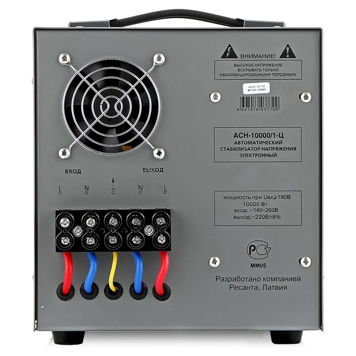 АСН-12000/1-Ц это стабилизатор напряжения релейного типа, который можно применять в однофазных цепях переменного тока, с целью стабильного питания электроустройств с суммарной мощностью не более 12 кВт. Тип входной сети однофазная Диапазон входных напряжений 140260 В Частота входной сети 50/60 Гц Номинальная мощность 12 кВт Диапазон выходных напряжений 220 В ± 8 % Подключение к сети клеммная колодка Подключение нагрузки клеммная колодка Высоковольтная защита 260 В ± 8 В Искажение синусоиды отсутствует Байпас есть КПД, не менее 97 % Охлаждение естественное Рабочая температура окружающей среды 0+45 °С Относительная влажность воздуха, не более 80 % Габаритные размеры, Д×Ш×В 220x230x385 мм Масса, не более 20,8 кг Гарантийный срок эксплуатации 12 месяцев Класс защиты IP20 Длина упаковки, мм 440 Ширина упаковки, мм 285 Высота упаковки, мм 255 Объем упаковки, м³ 0,0320