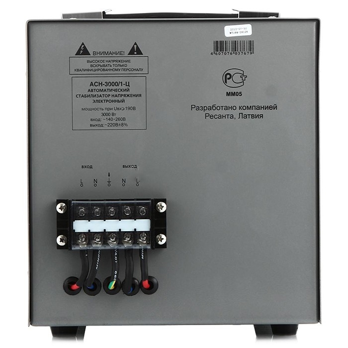 АСН-5000/1-Ц это стабилизатор напряжения релейного типа, который можно применять в однофазных цепях переменного тока, с целью стабильного питания электроустройств с суммарной мощностью не более 5 кВт. Тип входной сети однофазная Диапазон входных напряжений 140260 В Частота входной сети 50/60 Гц Номинальная мощность 5,0 кВт Диапазон выходных напряжений 220 В ± 8 % Подключение к сети клеммная колодка Подключение нагрузки клеммная колодка Высоковольтная защита 260 В ± 8 В Искажение синусоиды отсутствует Байпас есть КПД, не менее 97 % Охлаждение естественное Рабочая температура окружающей среды 0+45 °С Относительная влажность воздуха, не более 80 % Габаритные размеры, Д×Ш×В 220x230x340 мм Масса, не более 13 кг Гарантийный срок эксплуатации 12 месяцев Класс защиты IP20 Длина упаковки, мм 405 Ширина упаковки, мм 285 Высота упаковки, мм 255 Объем упаковки, м³ 0,0294
