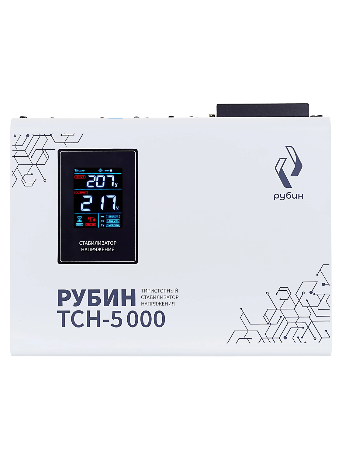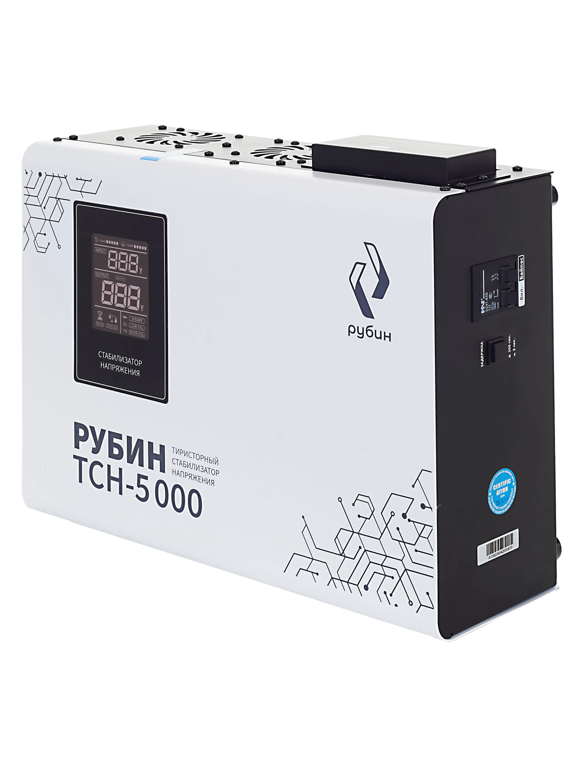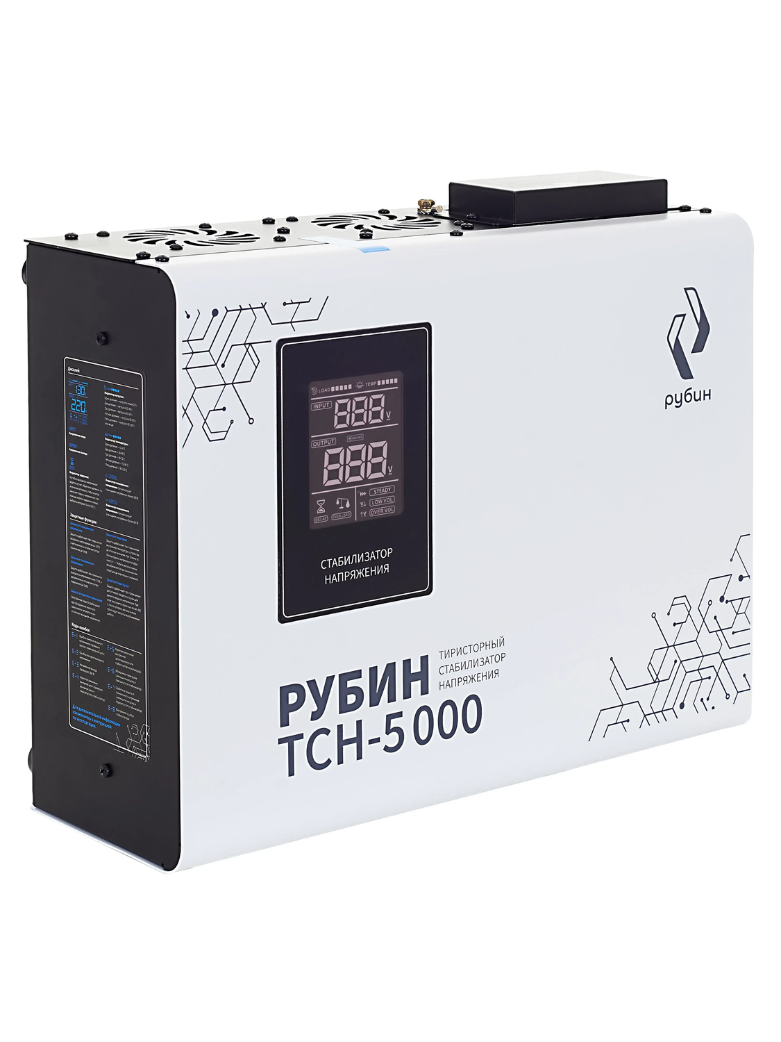 Тиристорный стабилизатор Рубин ТСН 5000 (+/-5%) предназначен для поддержания стабильного напряжения в однофазных электросетях. Стабилизатор оснащен комплексом систем, обеспечивающим надежную защиту как потребителей, так и самого стабилизатора от любых нештатных ситуаций, и рассчитан на непрерывную круглосуточную работу в условиях больших по значению и длительности отклонений напряжения от номинального значения. Тип стабилизатора тиристорный Тип сети однофазная Серия стабилизатора РЭ-ТСН Применение для водяного насоса, для дачи, для дома, для квартиры, для стиральной машины Полная мощность, ВА 5000 Мощность, кВА 5 Мощность, кВт ~4 Максимальный входной ток, А 25 Способ установки напольный, настенный Подключение клеммная колодка Режим "БАЙПАС" есть Отклонение выходных напряжений, % ±5 Режим работы непрерывный Тип охлаждения воздушное (конвекционное и принудительное) Дисплей LED-дисплей Индикация входное напряжение / выходное напряжение / сеть / защита / задержка Задержка включения, сек 200, 5 Предельный диапазон входных напряжений, В 80-280 Рабочий диапазон входных напряжений, В 95-250 Номинальное выходное напряжение, В 220 Частота, Гц 50-60 Время реакции на изменение напряжения, мс 30 Защита от повышенного напряжения, откл. при, В 247 Защита от пониженного напряжения, откл. при, В 170 Защита от перегрева трансформатора, откл. при, °С 120 Защита от перегрузки по току Автоматический выключатель (электронная) Степень защиты от внешних воздействий по ГОСТ 14254-96 IP20 Относительная влажность, % 0 - 80 (без конденсата) Температура эксплуатации, °С -20....+65 КПД при полной нагрузке, % 95 Температура хранения, °C -30...+80 Вес, кг 18,4 Размеры, мм 438х356х164 Размеры в упаковке, мм 490х405х210 Особенности Надежность и молниеносная скорость реакции электронных ключей на отклонение напряжения; Отсутствие движущихся частей и ненадежных реле; Наличие чистой синусоиды; Низкое собственное потребление и высокая энергоотдача; Одинаково хорошо работает с резистивной, индукционной, емкостной и смешанной нагрузкой. Преимущества Стабилизирует напряжение при скачках до 280В и проседаниях до 80В; Благодаря погрешности выходного напряжения 5% подходит даже для самых требовательных и чувствительных приборов; Высокая перегрузочная способность до 200% для устройств с высокими пусковыми токами (насосы, компрессоры, станки); Меньше выделения тепла и потери мощности. Виды защиты Защита от повышенного напряжения; Защита от пониженного напряжения; Защита от электрических помех; Защита от высоковольтных скачков; Защита от провалов входного напряжения; Защита от перегрева. Перегрузочная способность Перегрузка 20% - до 30 минут; Перегрузка 40% - до 12 минут; Перегрузка 60% - до 7 минут; Перегрузка 100% - до 1,5 минут; Перегрузка 200% - менее 1 секунды. Тиристорный стабилизатор Рубин ТСН 5000 (+/-5%) предназначен для бытового и промышленного применения. Подходит для водяного насоса, компрессора, станков.