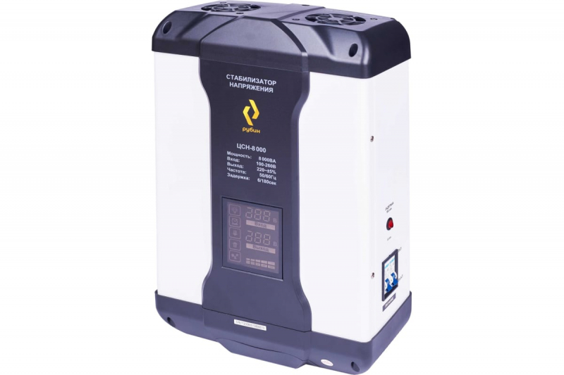Широкий диапазон входного напряжения: от 100 В до 260 В. Это позволяет стабилизаторам адаптироваться к разным условиям питания и обеспечивать стабильное напряжение независимо от колебаний в сети. Тип стабилизатора: релейный Мощность, ВА: 8000 Количество фаз: 1 Частота, Гц: 50 (60) Напряжение входа (рабочее): 100 Напряжение входа (предельное): 260 Напряжение выхода: 220 В ± 5% Коэффициент полезного действия, %: 98 Защита от пыли и влаги: IP 20 (негерметизирован) Короткое замыкание: электронная защита Диапазон рабочей температуры, °С: от -30 до +40 Входная сеть: клеммная колодка Охлаждение: туннельное Габаритные размеры (д х ш х в), мм: 480х300х150 Вес БРУТТО, кг: 16 Применение технологии перекрестного переключения с нулевым значением и цифрового управления процессором, что обеспечивает точное и плавное регулирование напряжения. Система обратного отсчета с задержкой позволяет достичь высокой точности стабилизации и минимизировать влияние скачков напряжения на устройства. Встроенный детектор тока обеспечивает более точный контроль и управление электроэнергией, позволяя эффективно регулировать выходное напряжение и обеспечивать стабильное электропитание. Применение тороидального трансформатора, который обеспечивает высокую эффективность работы устройства и снижает потери энергии. Стабилизаторы являются энергоэффективными и экономичными в использовании. Полная защита питания - наши стабилизаторы оборудованы всеми необходимыми механизмами для защиты от высокого и низкого напряжения, перегрева, перегрузки, короткого замыкания и задержки на выходе (6 или 180 секунд). Это обеспечивает надежную защиту вашего оборудования от возможных повреждений. Преимущества Цветной светодиодный дисплей с полной информацией. Система охлаждения: туннельное охлаждение с автоматическим запуском при 65°C. Система поглощения электрической дуги. Разработано специально для российских сетей. Компактность и небольшой вес. Ультратонкий.
