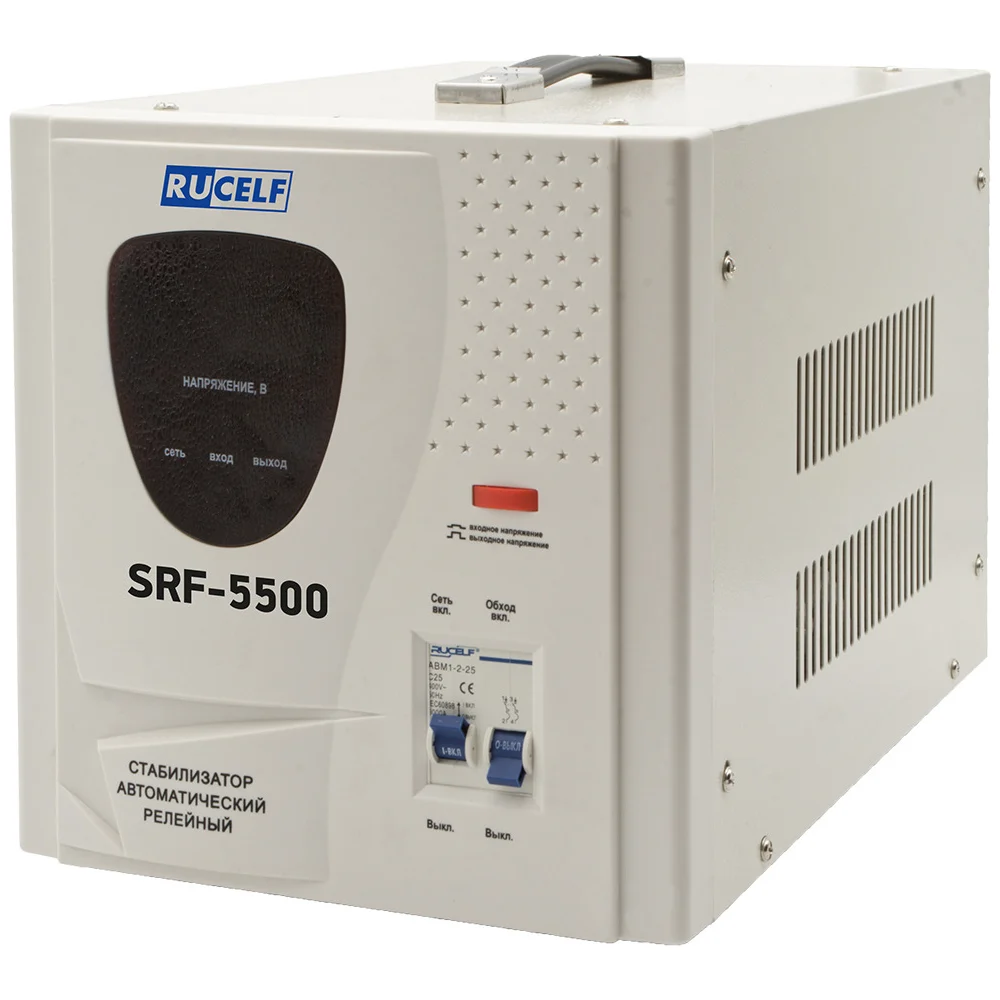 Стабилизатор напряжения Rucelf SRF-5500 функциональный прибор, который поможет защитить подключенную бытовую технику от некачественного сигнала питающей электросети. Стабилизатор оперативно реагирует на скачки напряжения, выравнивая его до номинального значения. Страна производства Россия. Количество фаз: Однофазный Выходное напряжение (В): 220 Максимальная мощность (В·А): 5000 Максимальная мощность (Вт): 4000 Точность стабилизации - 8% Минимальное входное напряжение (В): 140 Максимальное входное напряжение (В): 275 Частота (Гц): 50 Степень защиты (IP): IP20 Электрический КПД (в %): 97 Цвет: Белый Ширина (см): 26 Высота (см): 30 Глубина (см): 41 Вес нетто (кг): 10.48 Модель рассчитана на подключение электрических приборов, питающихся от бытовых однофазных сетей с напряжением 230 В и частотой 50 Гц, суммарной мощностью не больше 5000 ВА. Металлический корпус модели обеспечивает надежную защиту от ударов и повреждений. Продуманная система вентиляции способствует эффективному охлаждению рабочих узлов, независимо от степени нагрузки.